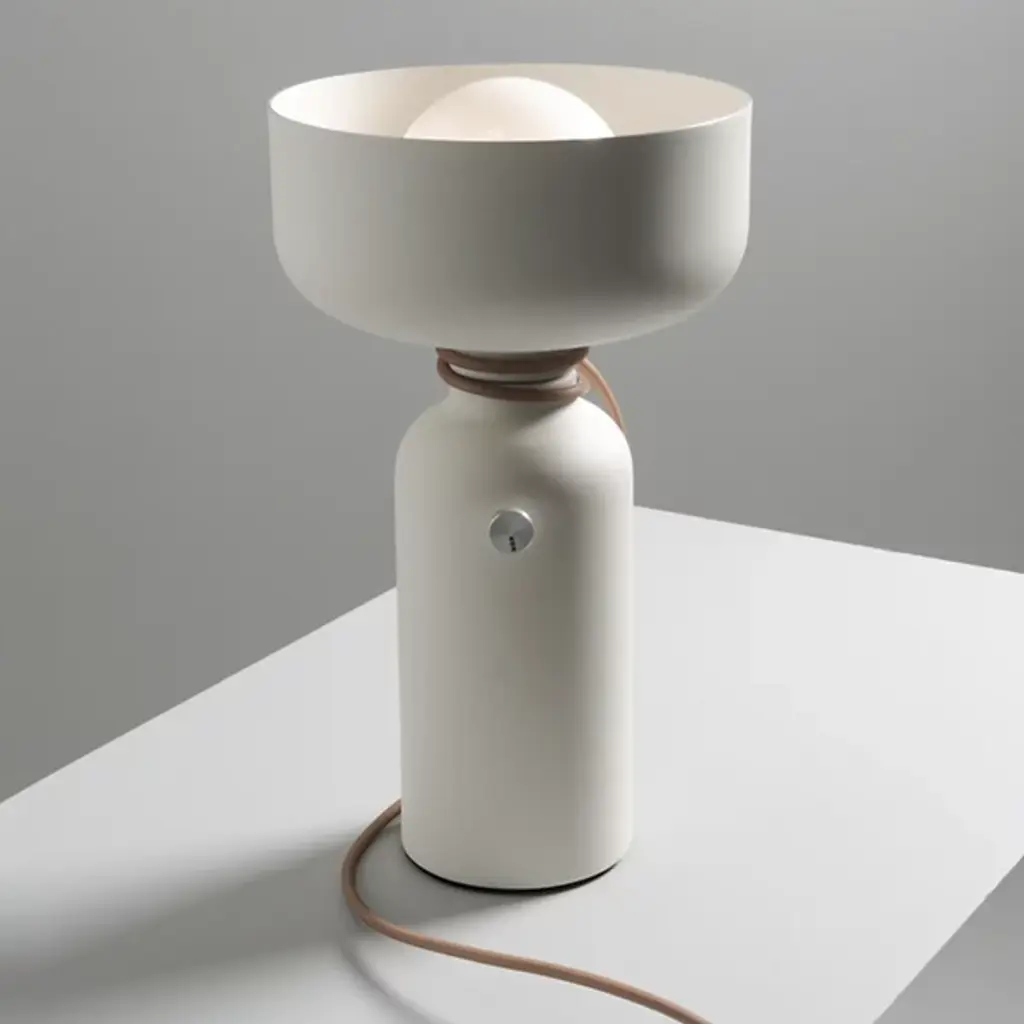 Keeping with a timeless design, the Spotlight Volumes D Series Table Lamp by ANDlight was designed by Lukas Peet as part of his desire to challenge familiar views of lighting fixtures. It resembles an industrial, factory take on a typical table lamp base with a nylon rope electrical cord wrapped gently around the thin, central neck. As a unique twist, it comes with 4 different options for uplight housing, ranging from a wide, bowl shape to a mirror image of the base.