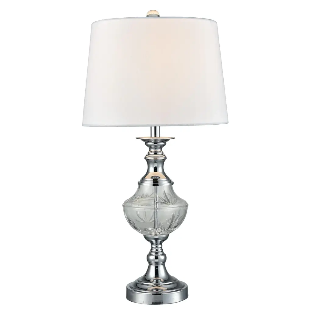 Our artisans have taken 24 percent lead crystal and created a pristine sparkle with Frosted Murray 26 in tall crystal table lamp. The lamp makes a brilliant statement anywhere it is displayed. A great gift for yourself or someone special, this is as uncommon a beauty that is as individual as you are. The lamps base crystal design is nestled between polish chrome metal and finished elegant white hardback fabric shade. It is high quality luxurious modern lighting, amazing value, and easy to assemble!