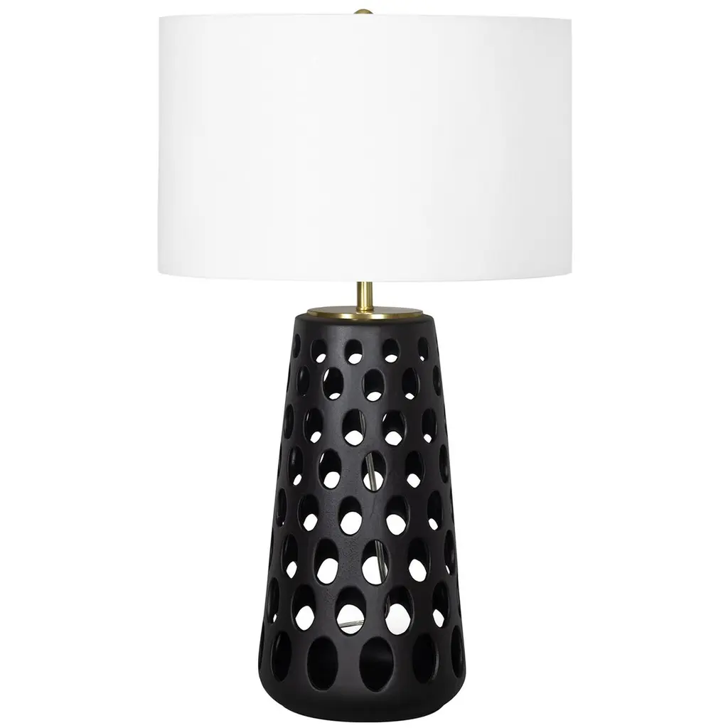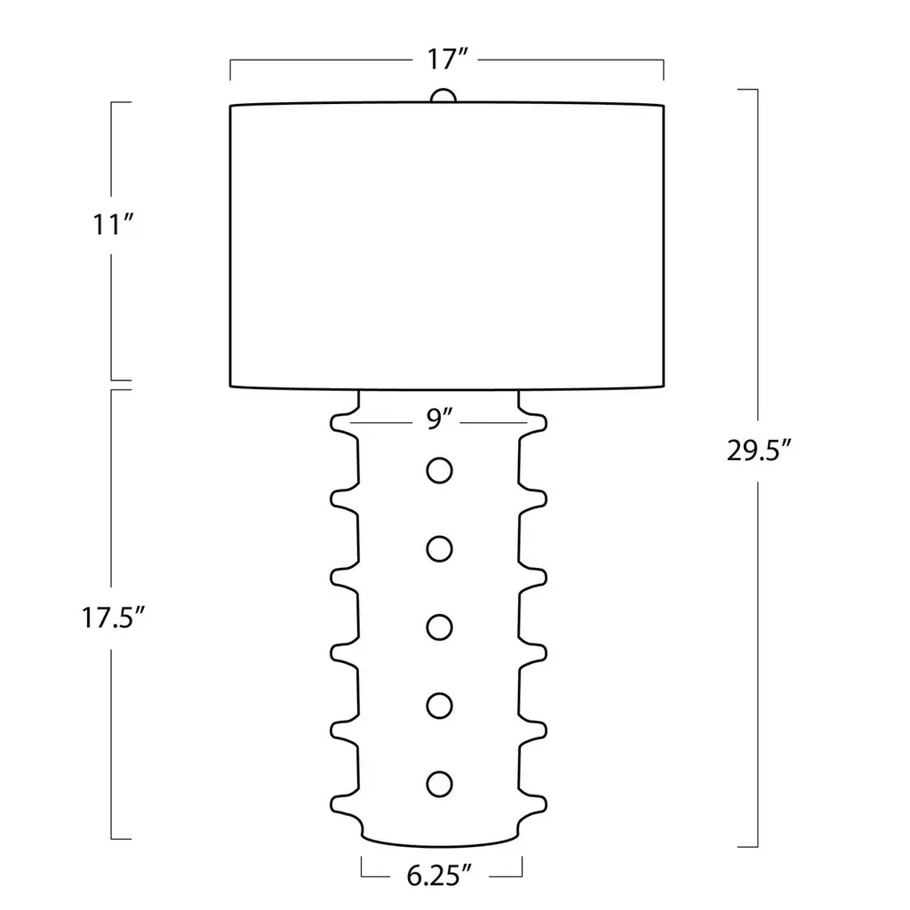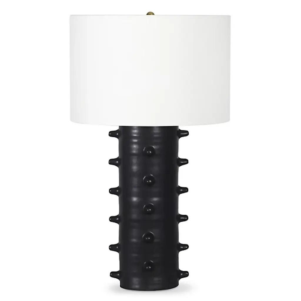 The Spruce Ceramic Table Lamp blends modern aesthetics and functional design. With a rock n' roll edge, the lamp is composed of a sleek base with distinctive protruding nodules, creating the effect of a piece of art. Perfect for bedside tables, home office or living room to add a unique touch.