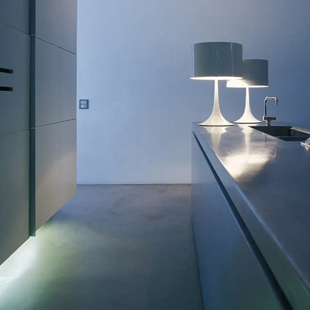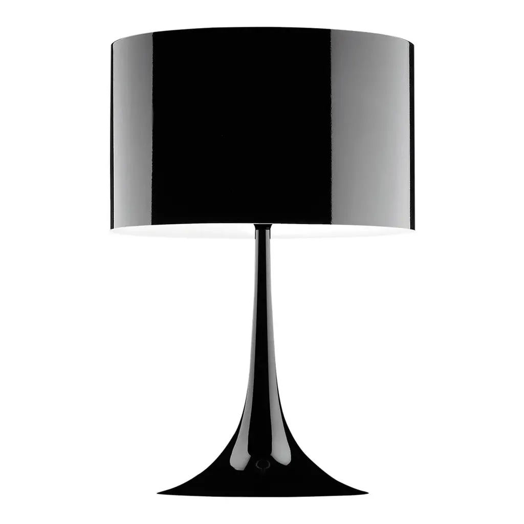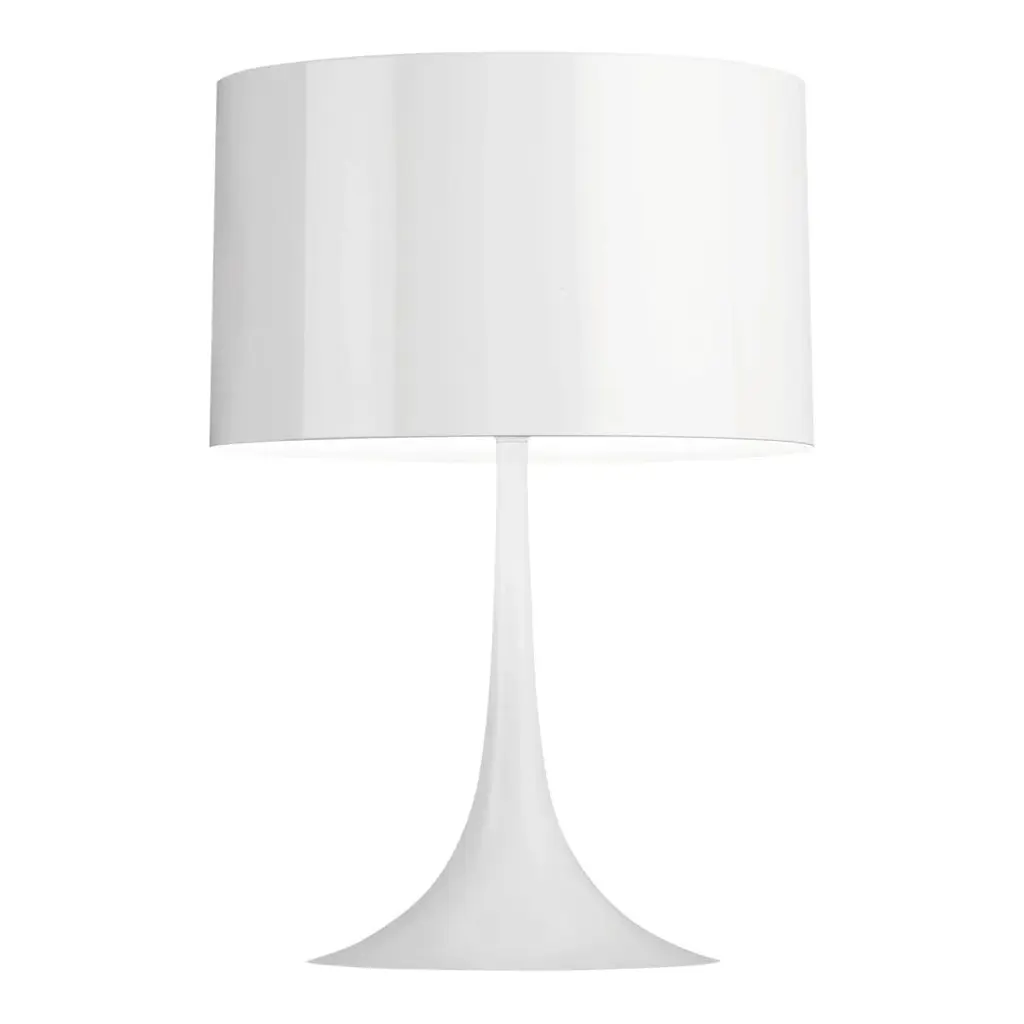 Designed by Sebastian Wrong in 2003, the Spun Light-T table lamp reflects the best of modern manufacturing technology combined with elegance, craftsmanship, and dynamic fluid aesthetics. Its main body has a spun metal frame and diffuser. The diffuser support arms and lamp-holder support are die-cast aluminum, painted in different colors. Diffuser supports are white, injection-molded PC (polycarbonate; UL-94 V2). The dimmer has a 0-100% luminosity adjustment on the polarized cord. Emitting a gorgeous diffused light, the Spun Light-T table lamp is part of the Spun Light family.