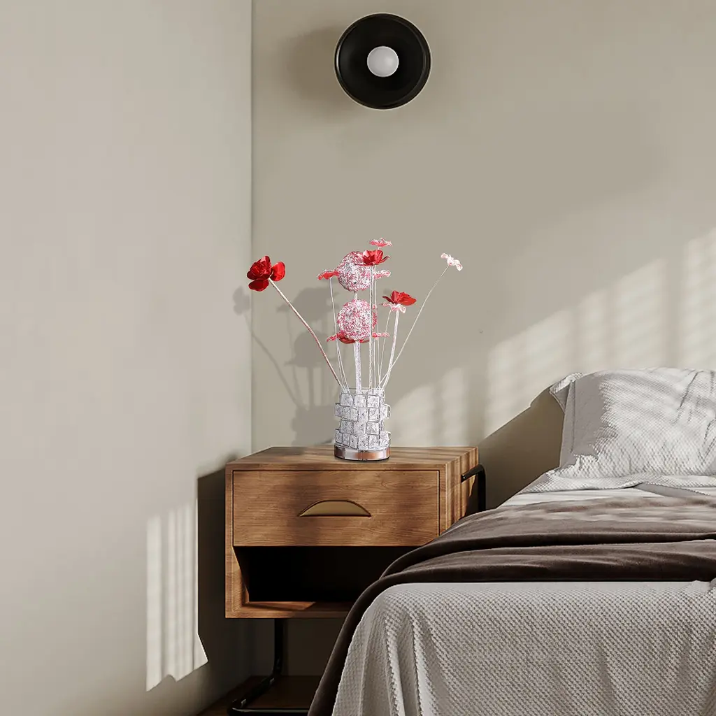 Squared Aluminum 4 Red Roses Table Lamp Flower Bud Led Lamp - White