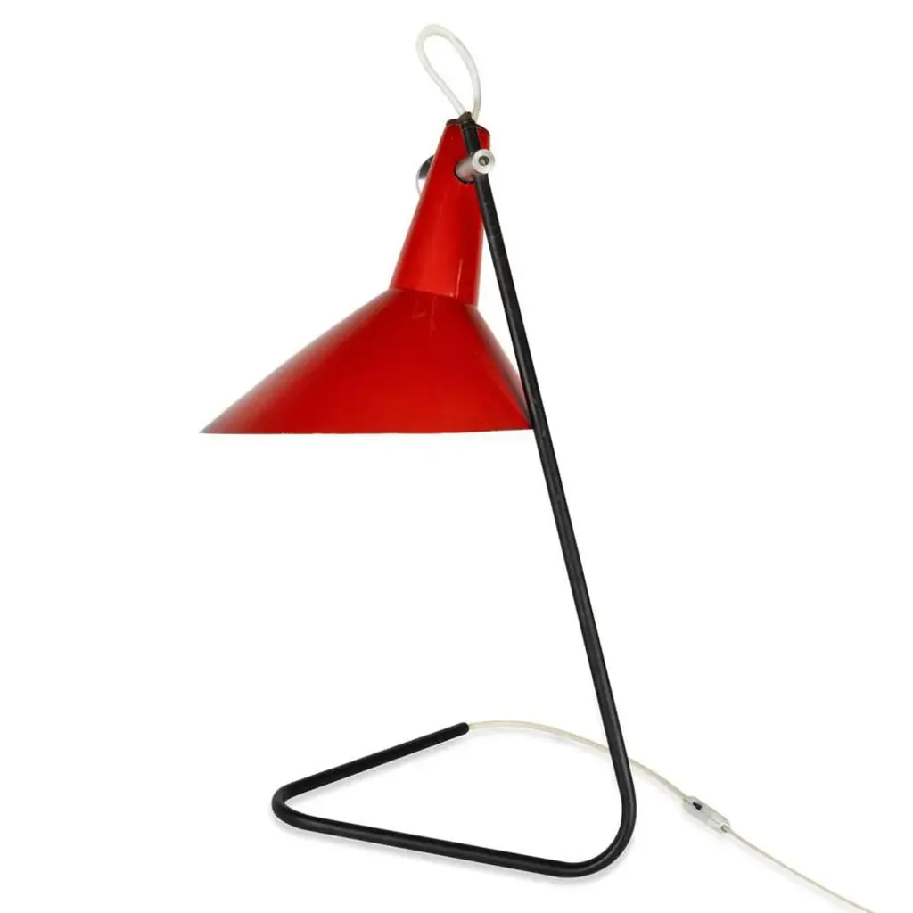 This metal table lamp type ST30, made in the 1960s by the Kovona company according to the design of Josef Hůrka. Hůrka designed many successful lamps produced under the Napako, Lidokov and Kovona brands. This lamp is a fine example of the Brussels style, characterised by simple shapes and a clean colour palette. The lamp's tubular base is black and the metal shade is strawberry red. It is made from a combination of aluminium and steel. The lamp is fully functional and in great original condition. I have official proof of authenticity such as vintage catalogs, designer records, or other literature sources and take full responsibility for any authenticity issues arising from misattribution, European Plug (up to 250V).The wiring of this item may be original and might need replacement, if not specified otherwise.