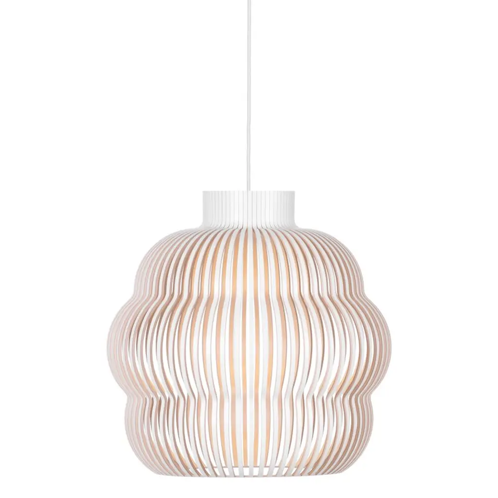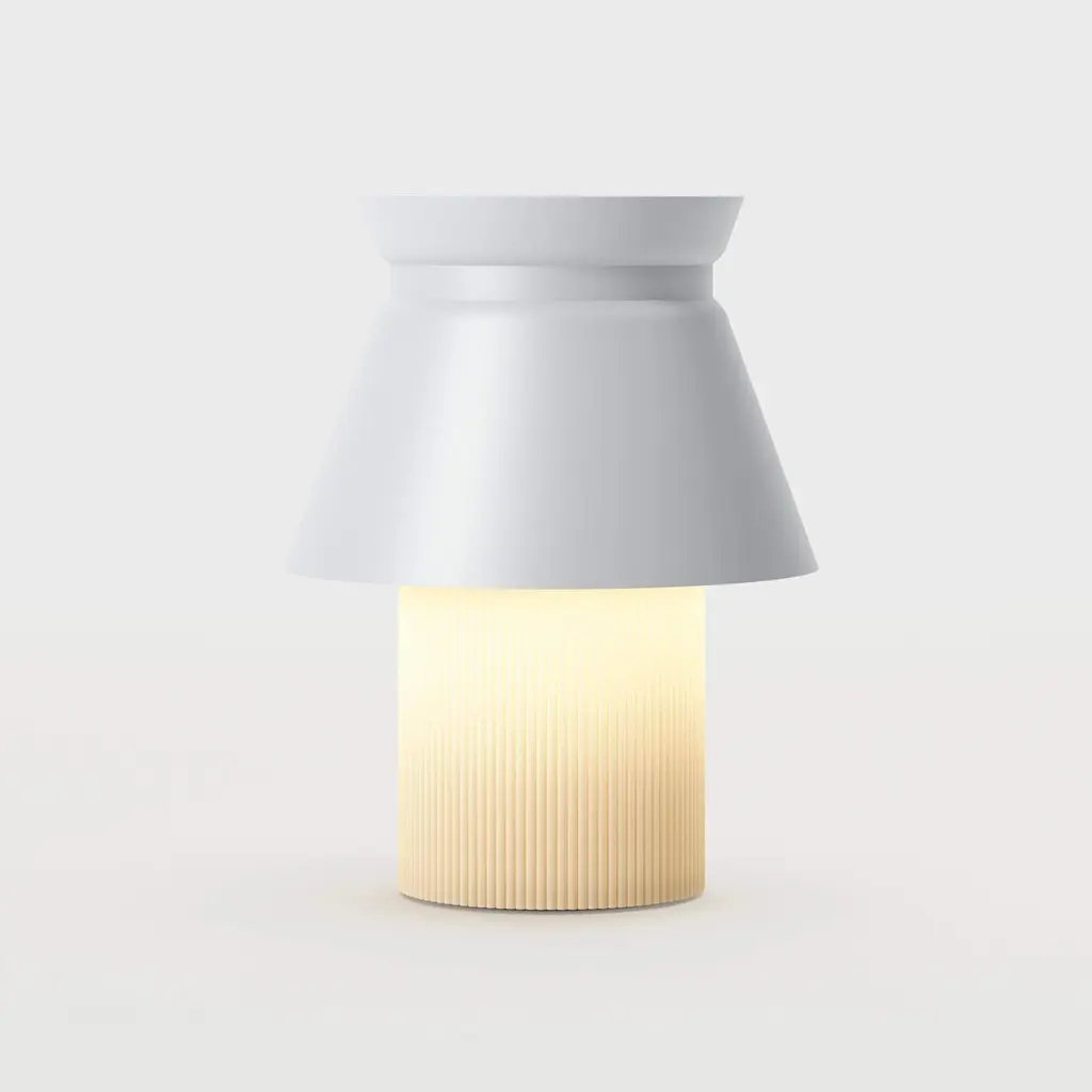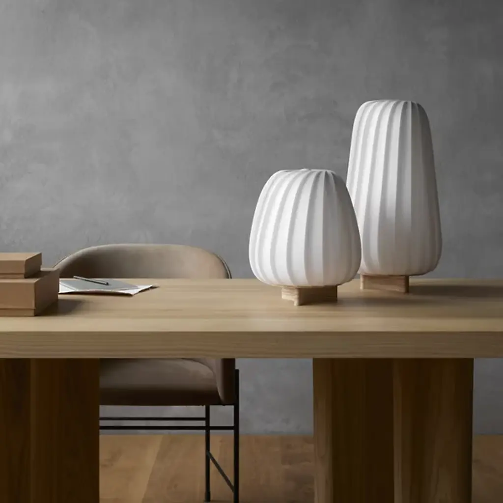 The ST906 Table Lamp from Tom Rossau is all about simple warmth. Inspired by a childhood Rossau spent in the natural setting of Odsherred, Denmark, the rounded hills and almost magical light of the region are on full display in each handmade lamp. The 8.5 Watt (800 Lumens) lamp is set inside a rounded shade made from strips of either natural birch veneer or coated paper, creating a surface that captures glare, transforming it into a glowing spectacle. The light within shows off the folds and spirals of the shade construction, while a slender wooden base anchors the fixture while keeping its layered construction on full display.