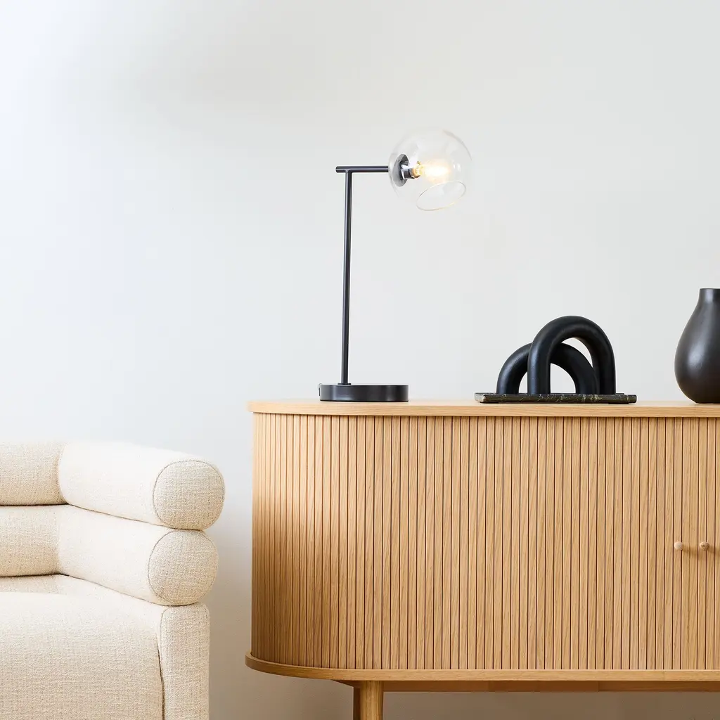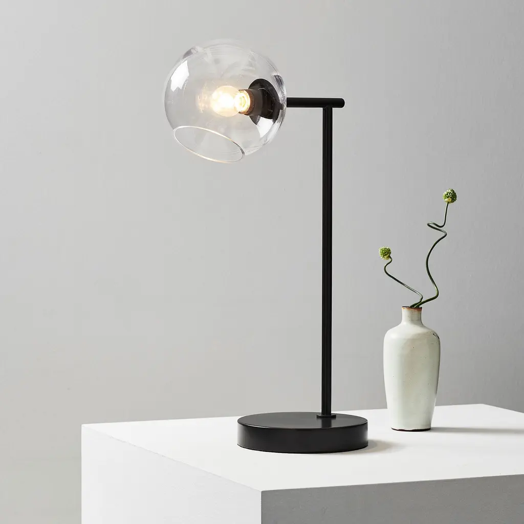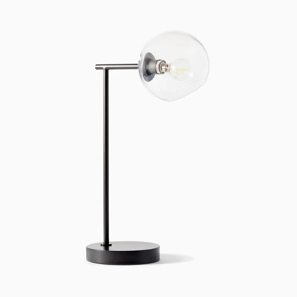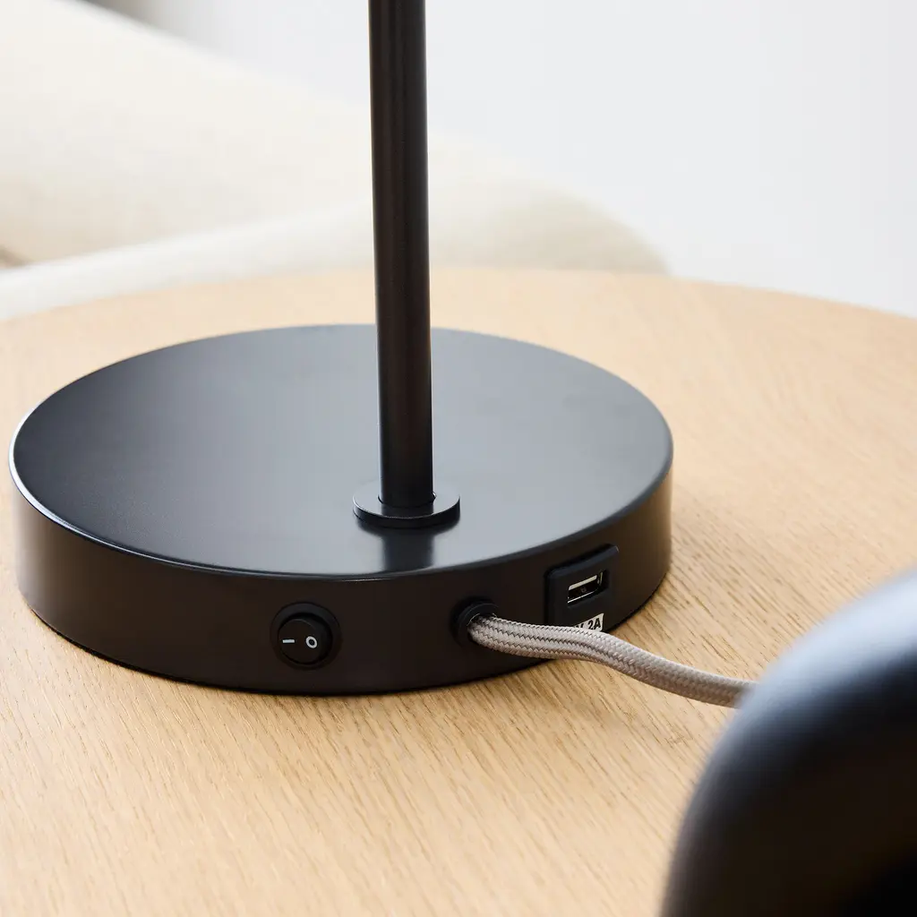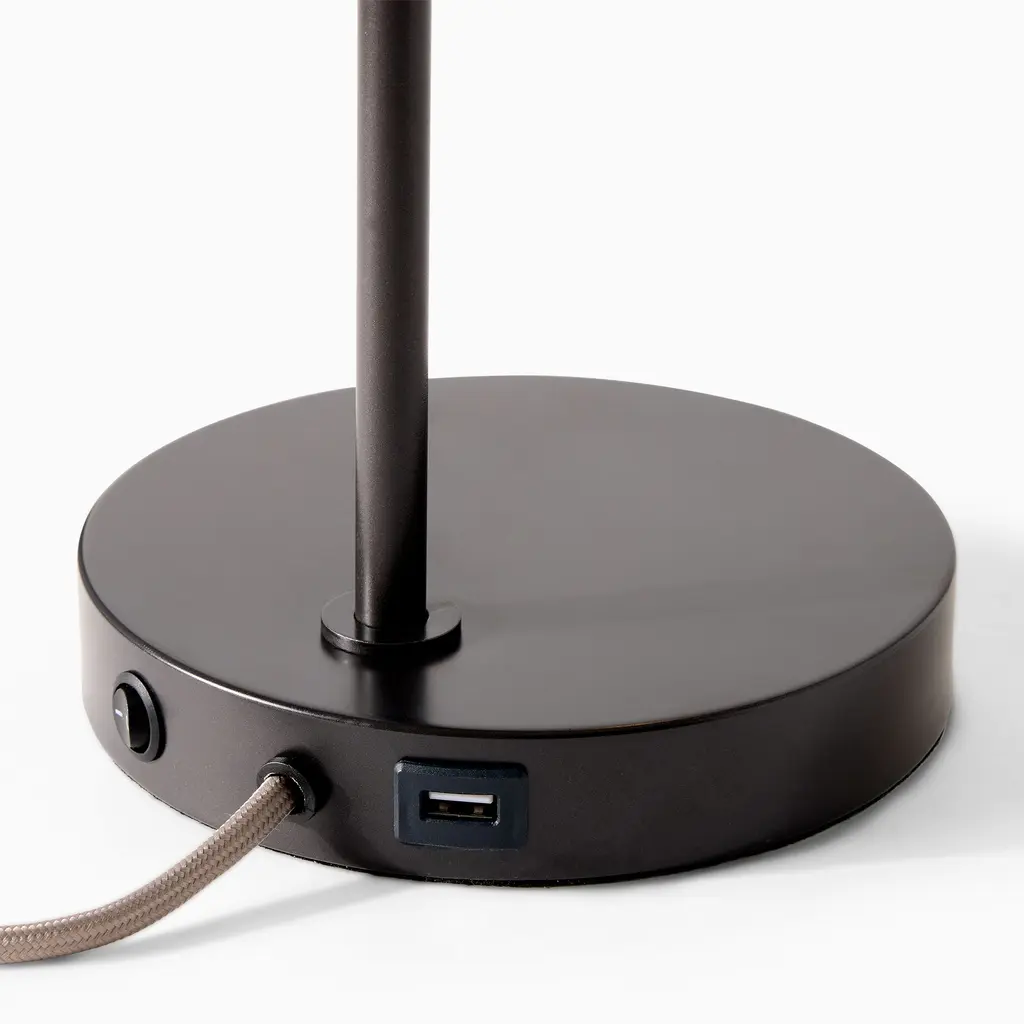 A built-in USB port makes our sleek and airy Staggered Glass Table Lamp perfect anywhere—bedside, desk, family room—you want to stay connected (no charging block required!).