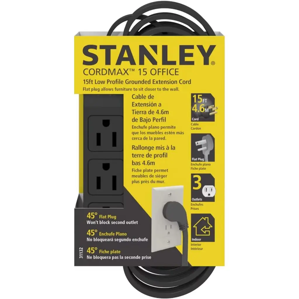 Stanley 31132 Cordmax Office Grounded Low Profile 3-outlet Indoor Extension Cord 15 Feet Black