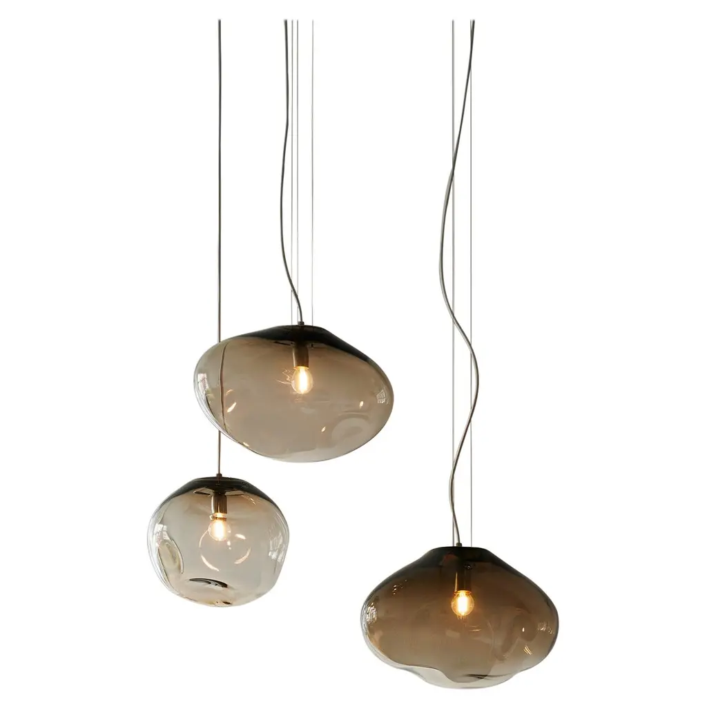 Solitary or in constellation, these lights create individual light concepts and associate with star constellations. Each glass piece is named after a star or a planet. They exist as hanging, floor, standing and wall luminaries.The creator combines the craft of ancient glassblowing with a simple, yet distinct design. In order to achieve the large size of the glass objects and working without forms, it takes a high level of refined craftsmanship and skill performed by only a few master glassblowers.Shimmering and glittering like twinkling stars, STARGLOW combines the smallest glass pendant lamps into a cloud of sparkling reflections. STARGLOW appears as a configuration, with 3, 6, or 10 pendant lamps. And STARGLOW’s impressions can be intensified all the more by simply increasing the number of elements. Due to its delicate size and Mini LED technology, STARGLOW can be used in many areas of the home to impressive effect. Whether in the lounge area or at the dining table, STARGLOW captivates with its airy and glimmering presence by way of its unique colors and myriad of possible lighting effects.Available in different size, colours and finishings: see every product page and pick up your favourite!