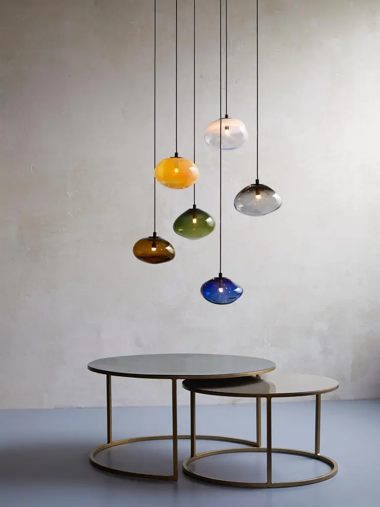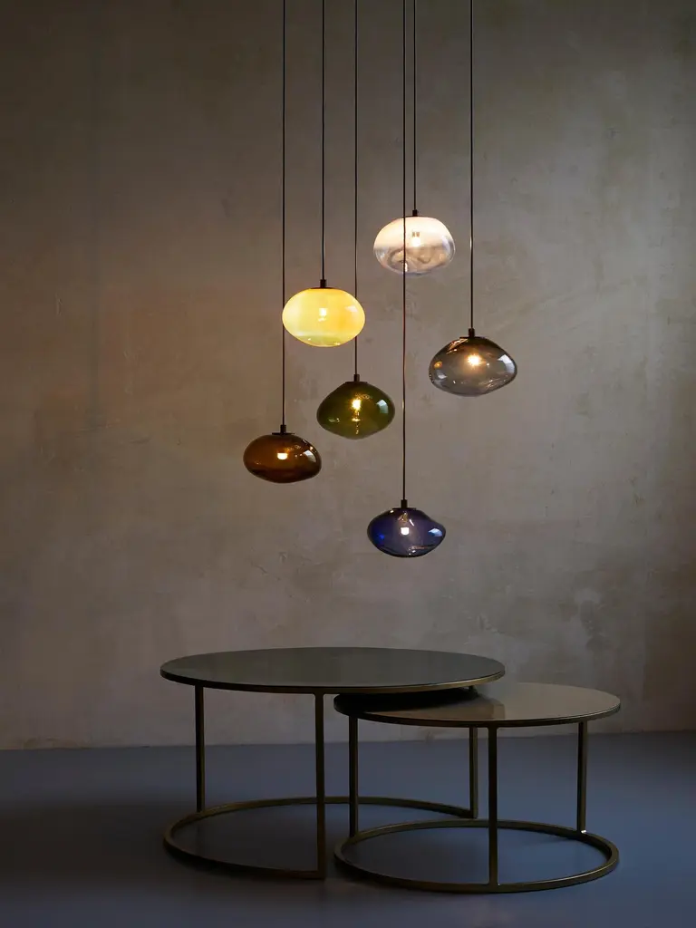 Solitary or in constellation, these lights create individual light concepts and associate with star constellations. Each glass piece is named after a star or a planet. They exist as hanging, floor, standing and wall luminaries.The creator combines the craft of ancient glassblowing with a simple, yet distinct design. In order to achieve the large size of the glass objects and working without forms, it takes a high level of refined craftsmanship and skill performed by only a few master glassblowers.Shimmering and glittering like twinkling stars, STARGLOW combines the smallest glass pendant lamps into a cloud of sparkling reflections. STARGLOW appears as a configuration, with 3, 6, or 10 pendant lamps. And STARGLOW’s impressions can be intensified all the more by simply increasing the number of elements. Due to its delicate size and Mini LED technology, STARGLOW can be used in many areas of the home to impressive effect. Whether in the lounge area or at the dining table, STARGLOW captivates with its airy and glimmering presence by way of its unique colors and myriad of possible lighting effects.Available in different size, colours and finishings: see every product page and pick up your favourite!