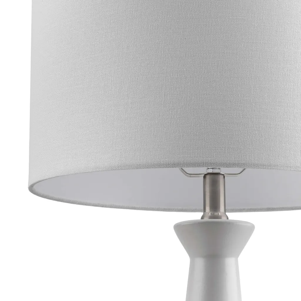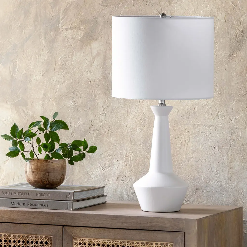The Starlet Table Lamp pairs moderm, sharp angles with a slim-line silhouette - creating a high-impact design without heavy visual weight. Crafted with a matte white ceramic base and bright white drum shade, the Starlet Table Lamp is perfectly styled on a buffet, desk or end table. Features - White ceramic base with bright white linen shade - 6 ft. cord - Three-way switch - Use with E-26 base bulb up to 100W (not included)
