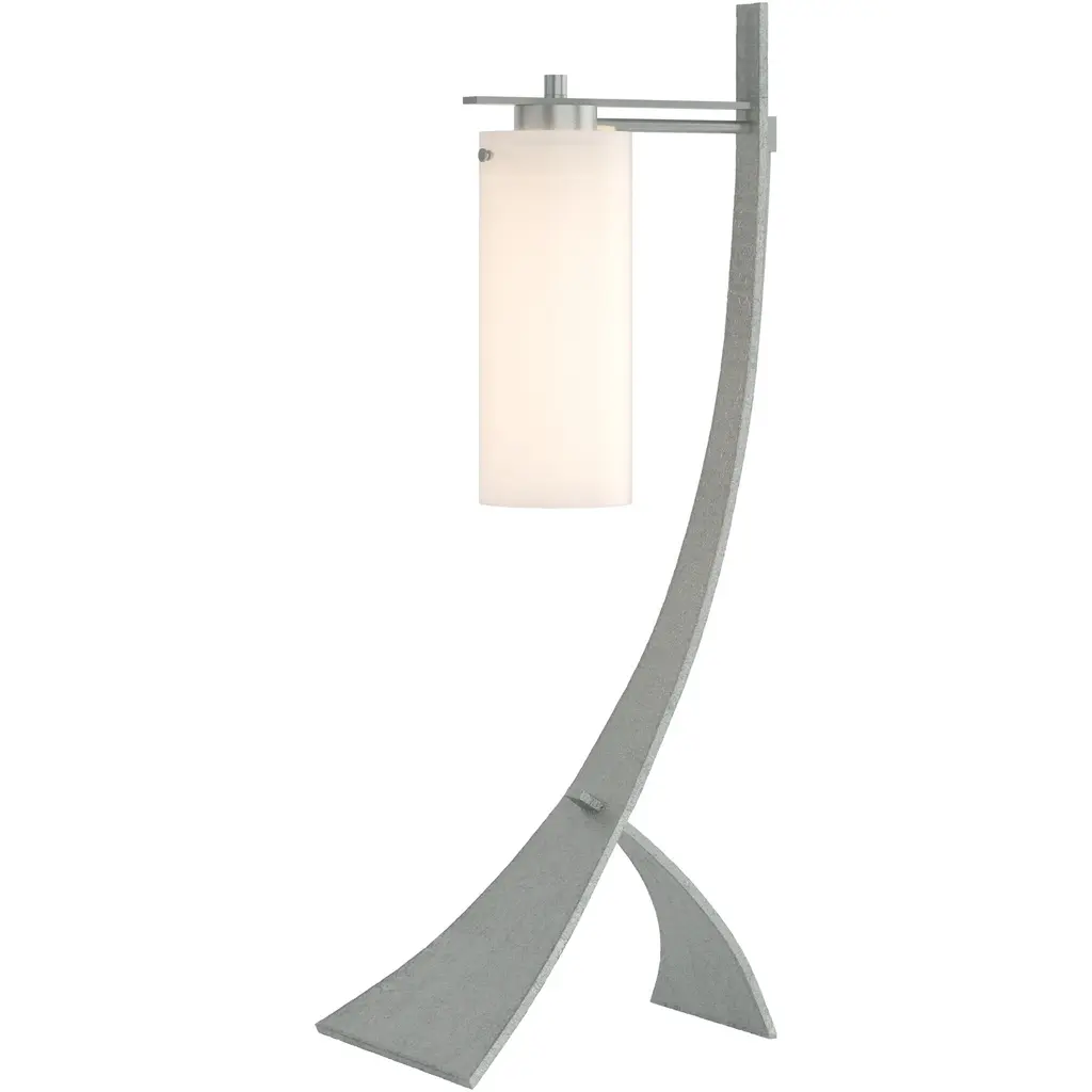 The "Stasis" of our table lamp could just as easily reference what happens to people who see it up close for the first time - they stop as they consider the graceful balancing act performed by iron hand-forged into gentle curves and counterbalanced by elegant glass.