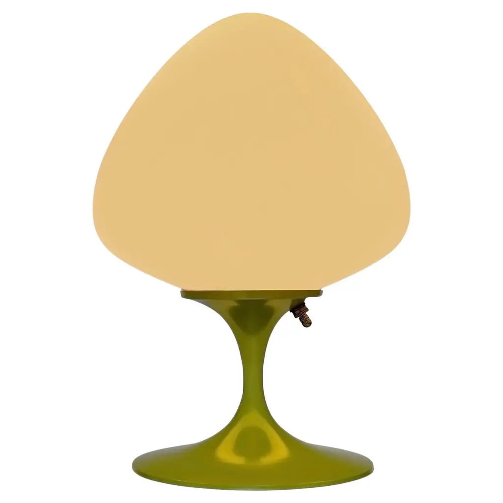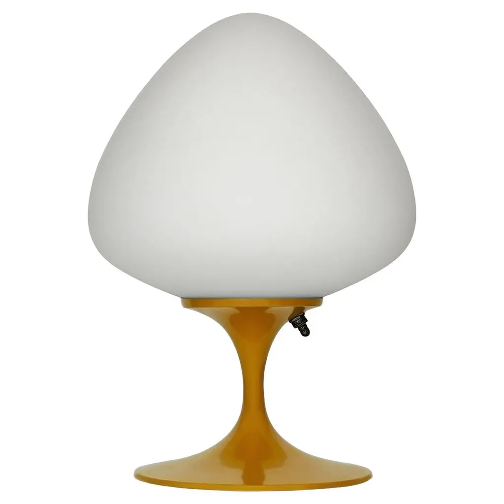ENJOY FREE CONTINENTAL USA SHIPPING! A classic retro designed stemlite table lamp made by Design Line. The lamp features a cast aluminum base with a nice retro sunset orange finish. The white acorn frosted glass lamp shade is handblown and gives off a soft warm light. The table lamp takes one standard light bulb up to 100 watts. The cord is over 7 feet long and is black in color. These retro lamps work with all mid-century modern furniture & decor. Such as classic vintage mcm, art deco, space age, post modern, retro kitsch and contemporary design. Imagine a pair of these lamps used as bedside lamps, on end tables in a living room, or a matching pair on top of a vintage credenza. These lamps will compliment modern furniture from iconic designers like Charles Eames, Eero Saarinen, Harry Bertoia, Paul McCobb, Adrian Pearsall, Verner Panton, Florence Knoll, Joe Columbo, Hans Wegner & Arne Jacobsen. Use a single lamp as an accent lamp on your favorite cabinet or buy one as a funky desk lamp. These are sure to go with modern furniture manufacturers from the past and present. Confidently mix these lamps that fit with brands like Herman Miller, Knoll, Fritz Hansen, Kartell, Artemide, Planner Group, Niels Moller, Maurice Villency, and Thayer Coggin. If you have any question, please don't hesitate to message us THANK YOU FOR SHOPPING WITH US!