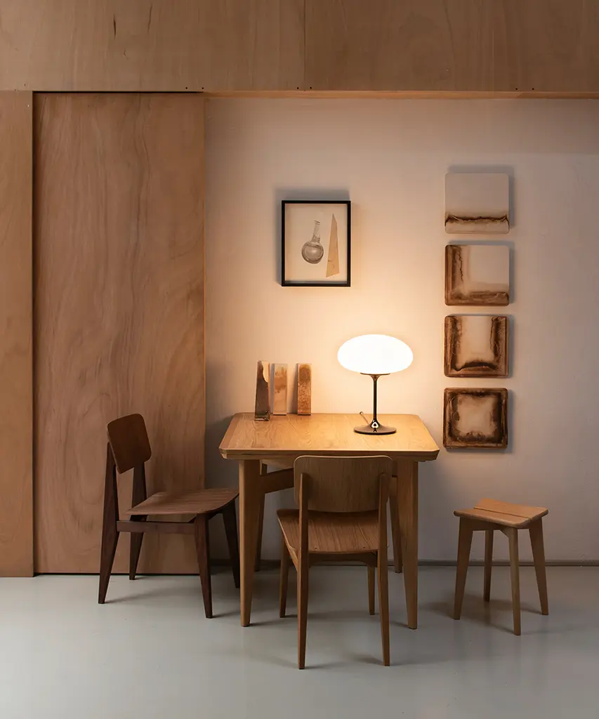 His debut design, the much-emulated Stemlite, was named “most influential lamp of the year” by Industrial Design Magazine in 1965, used on the set of the original Star Trek TV series, and remained in production until 1977. Now remastered by GUBI after almost half a century, the new collection comprises two table lamps, two-floor lamps, and a new pendant – a simple inversion of the original design – in a contemporary yet authentic color palette. Today’s Stemlite remains true to Curry’s designs, comprising three of the original heights: two table heights, one of which was originally conceived as a floor lamp and the original floor lamp height. A second, taller floor lamp has been added and a pendant light has been engineered by simply flipping the original design upside-down. A counterweight has been hidden in the negative space created by the geometry of the foot of the upright lamps to meet contemporary safety requirements regarding stability and versions of the floor and pendant lights with new larger globes are also available. Designed by Bill Curry for Danish design purveyor, Gubi.