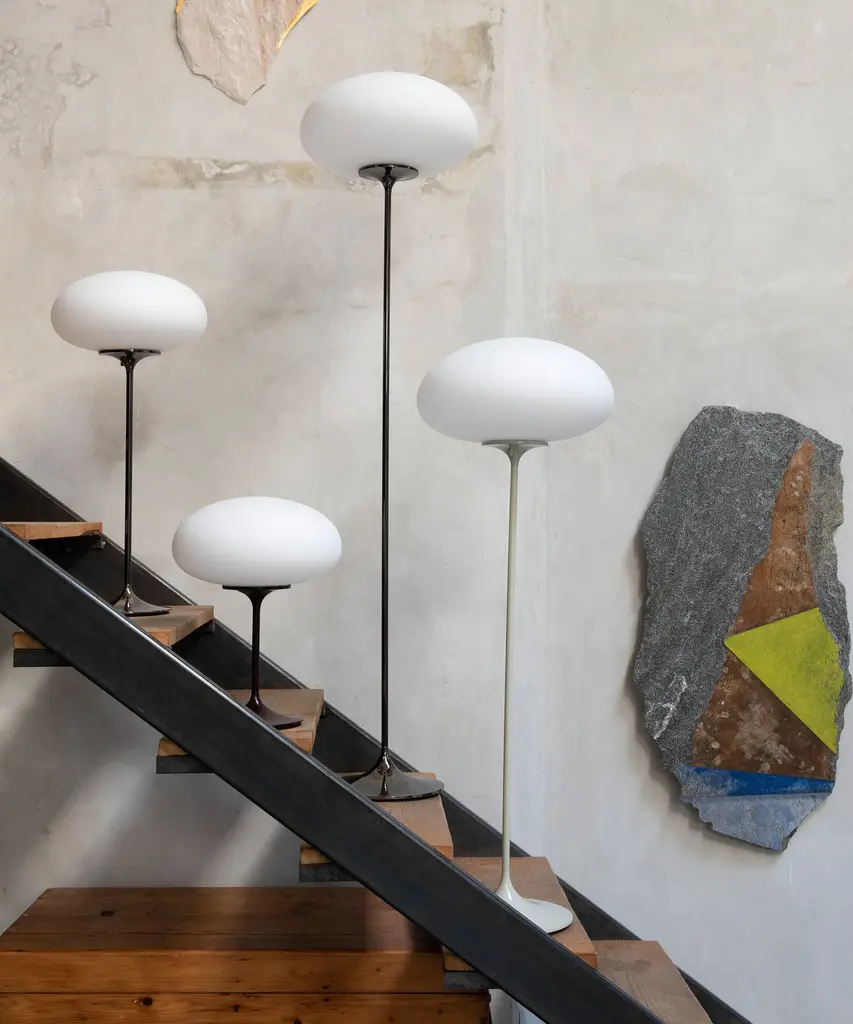 His debut design, the much-emulated Stemlite, was named “most influential lamp of the year” by Industrial Design Magazine in 1965, used on the set of the original Star Trek TV series, and remained in production until 1977. Now remastered by GUBI after almost half a century, the new collection comprises two table lamps, two-floor lamps, and a new pendant – a simple inversion of the original design – in a contemporary yet authentic color palette. Today’s Stemlite remains true to Curry’s designs, comprising three of the original heights: two table heights, one of which was originally conceived as a floor lamp and the original floor lamp height. A second, taller floor lamp has been added and a pendant light has been engineered by simply flipping the original design upside-down. A counterweight has been hidden in the negative space created by the geometry of the foot of the upright lamps to meet contemporary safety requirements regarding stability and versions of the floor and pendant lights with new larger globes are also available. Designed by Bill Curry for Danish design purveyor, Gubi.