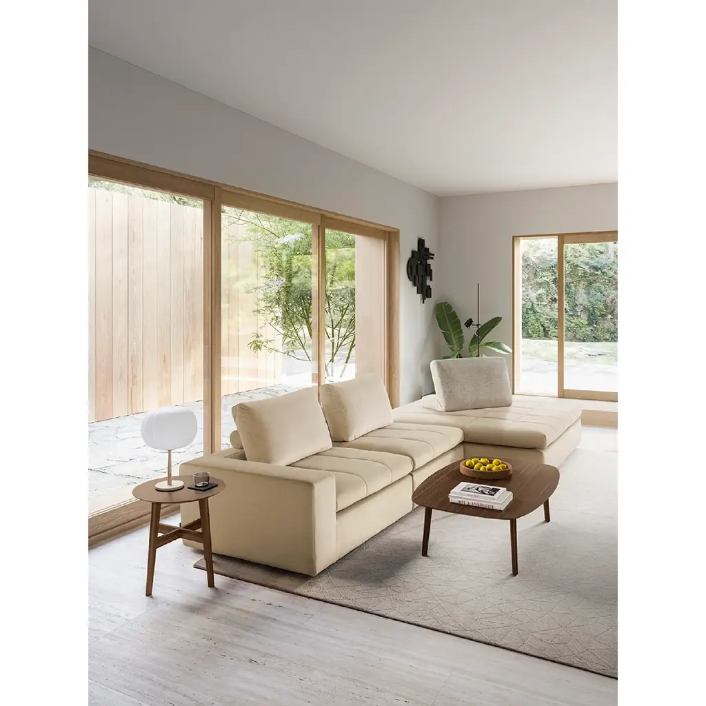 Indulge in luxury with Luceplan's Lita lamp. Its delicate design and mix of natural materials offer a unique blend of imagery and texture. The opaline blown glass diffuser features vertical cusps that create a mesmerizing effect. With a wooden structure and elegant brass finish, Lita exudes sophistication and refinement.