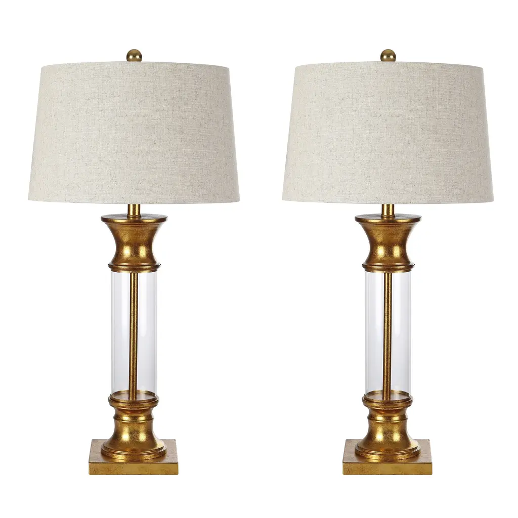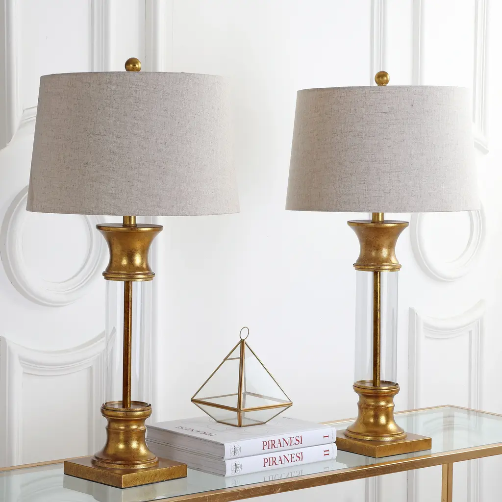 Stevens 32" Metal/glass Led Table Lamp, Bronze (Set Of 2) By Jonathan Y - Bronze/clear