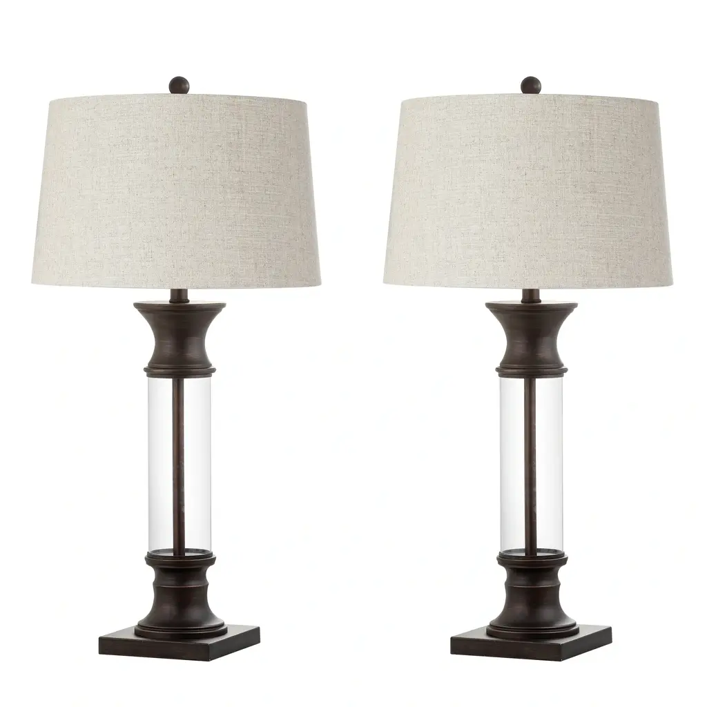 Stevens 32" Metal/glass Led Table Lamp, Bronze (Set Of 2) By Jonathan Y - Gold/clear
