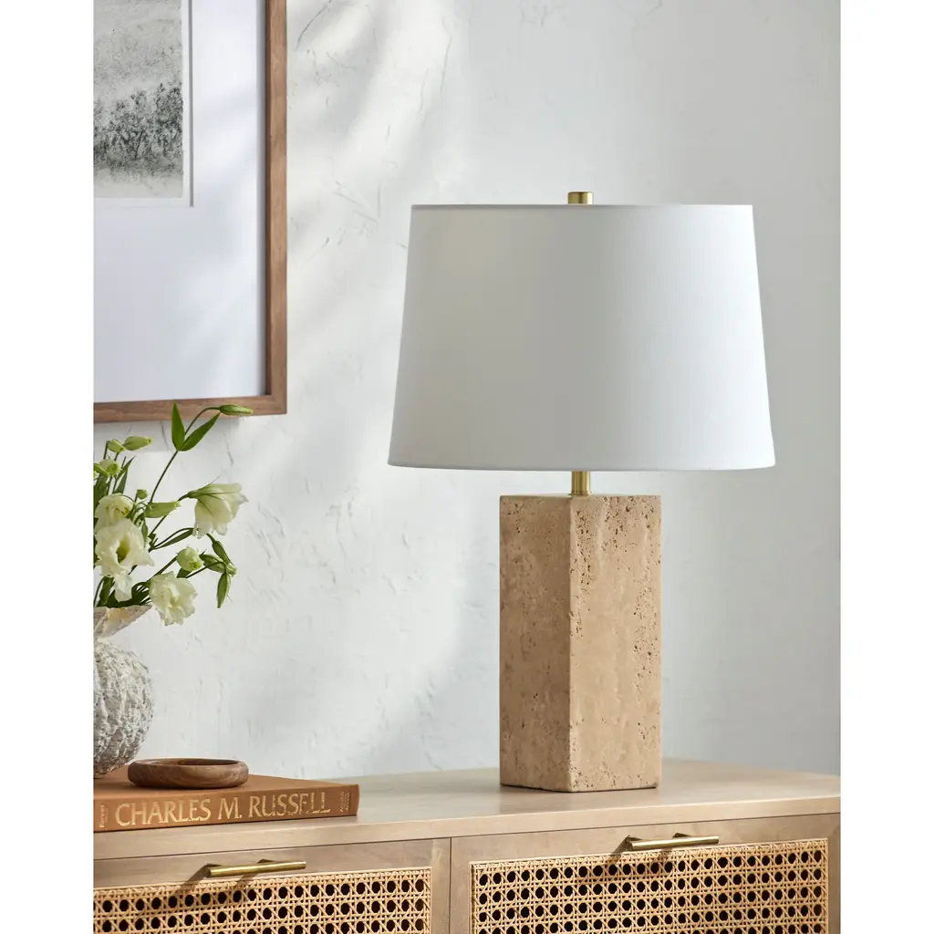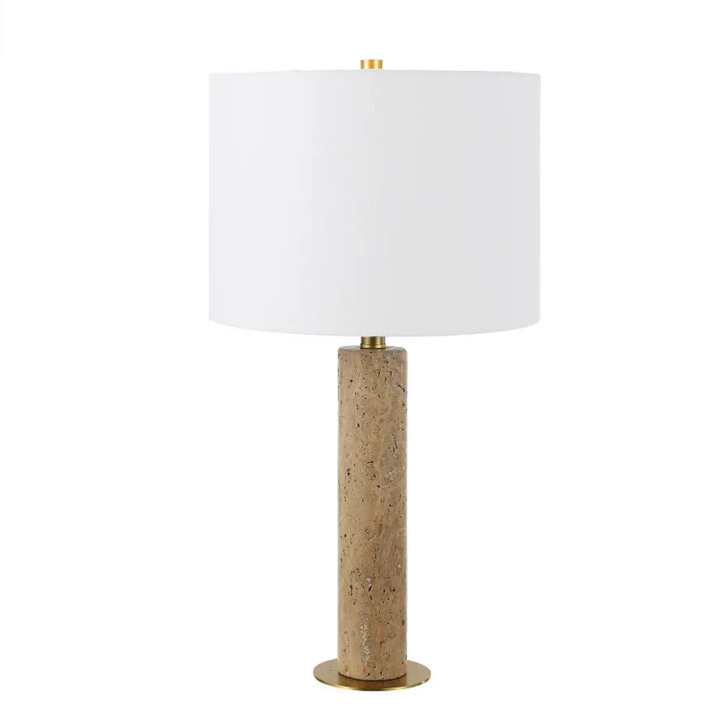 Petite Version Of A Wonderful Stone Lamp With Antique Brass Accents.