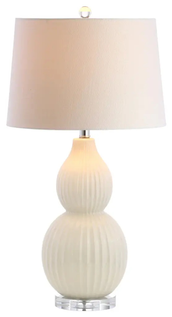 Add geological intricacy to your space with the Stratified Table Lamp from Uttermost. A functional sculpture designed by Matthew Williams, this mid-century modern piece features a unique silhouette of organically stacked ceramic rings finished in a matte white glaze. Brass-plated steel accents and a crystal base help the fixture appear to float, while a linen drum shade and a 3-way socket switch add a touch of functionality to the lamp's unmistakable character.