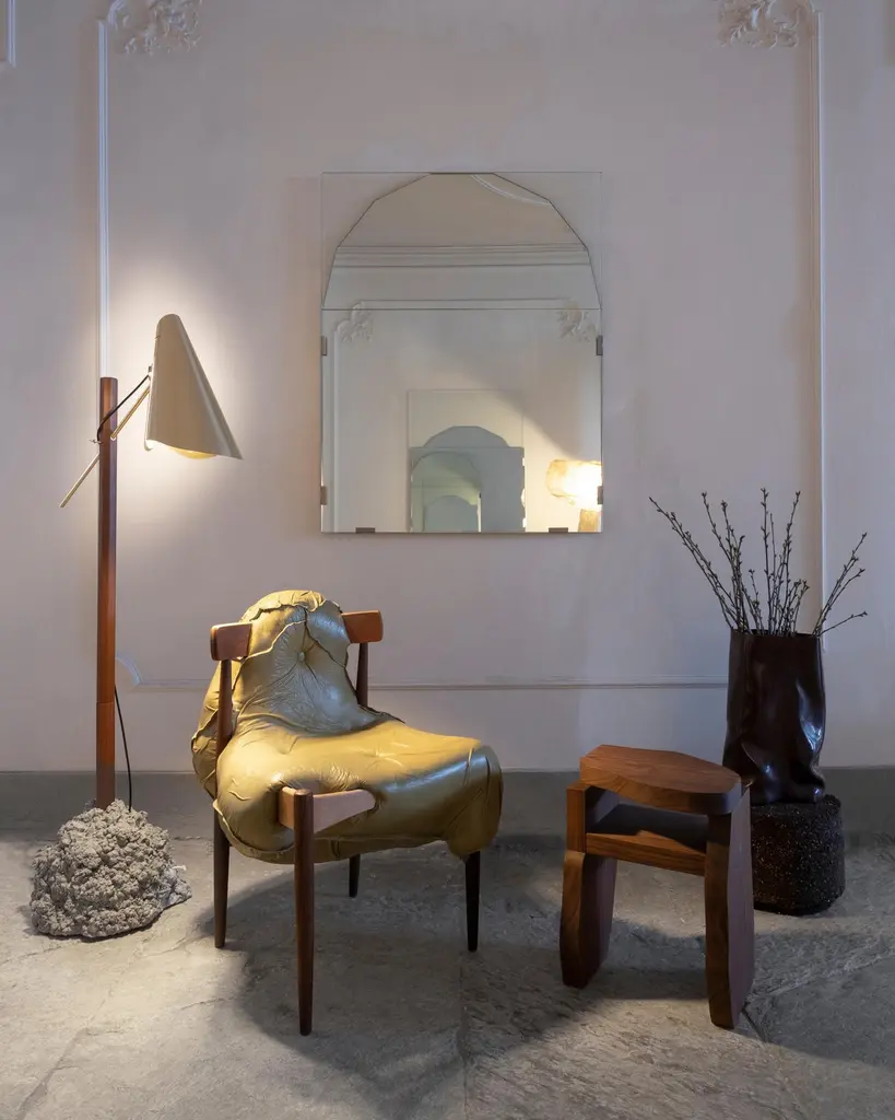 The Petite Street Lamp by Danish artist FOS, is a new version of the original Street Lamp, which has been shown at the State Museum in Copenhagen and various Céline stores world wide. The design and brass material of the shade, gives a warm and even light.