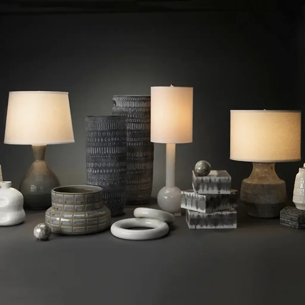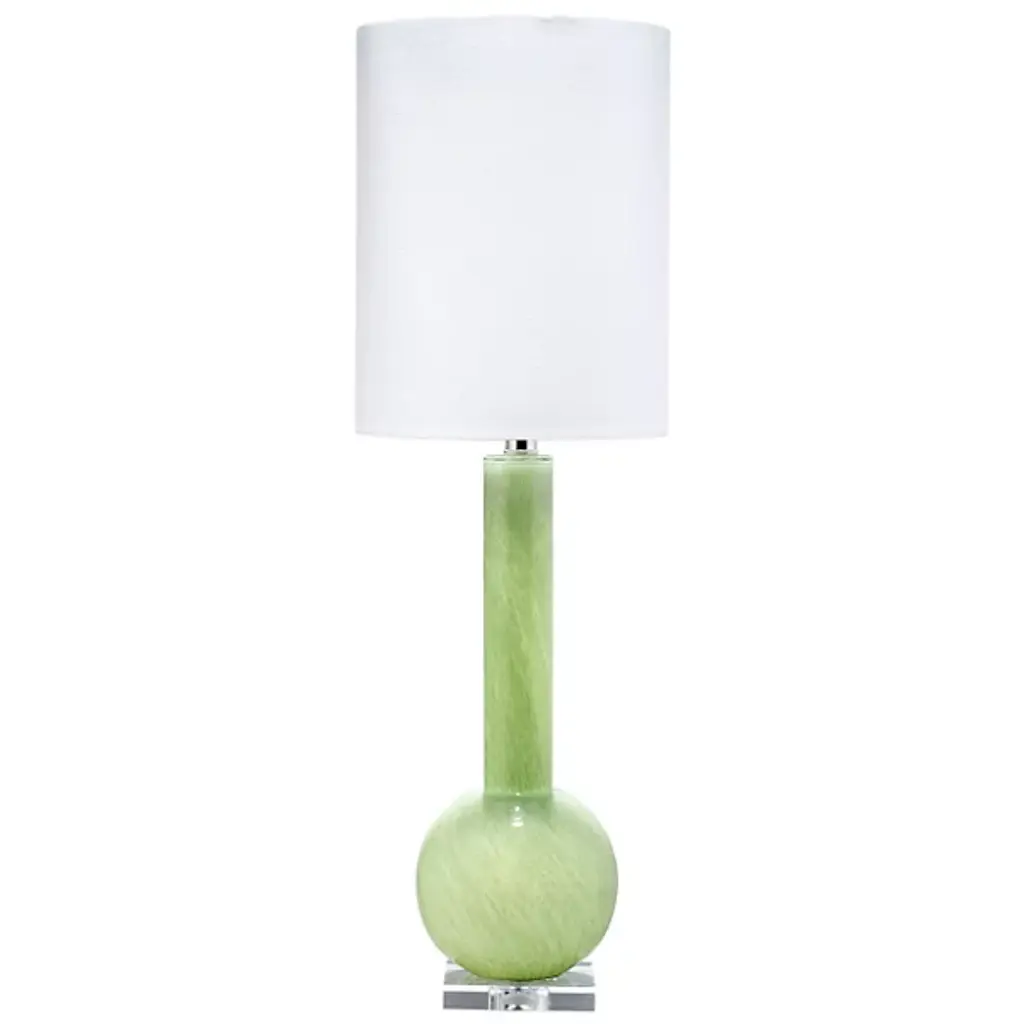 Sleek, chic and functional. The Studio Table Lamp by Jamie Young Co. lends an elegant aura to any space. Its retro appeal is defined by a tall linen shade, glass cylindrical stand and sphere-shaped base, while a choice of colors allows you to match to your established décor scheme. When turned on (bulb not included), this table lamp casts a luminous glow that's ideal for a bedroom, living room or even office area.