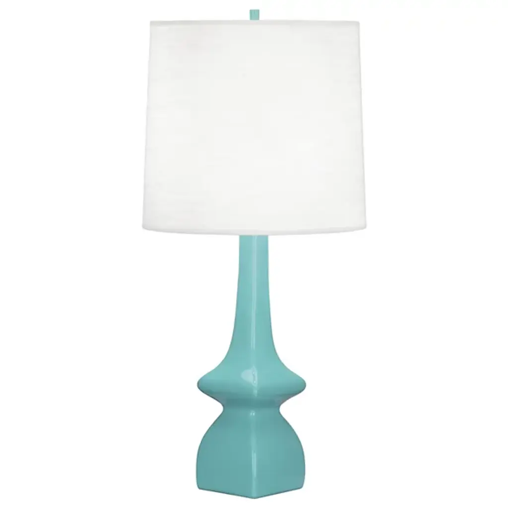 Sleek, chic and functional. The Studio Table Lamp by Jamie Young Co. lends an elegant aura to any space. Its retro appeal is defined by a tall linen shade, glass cylindrical stand and sphere-shaped base, while a choice of colors allows you to match to your established décor scheme. When turned on (bulb not included), this table lamp casts a luminous glow that's ideal for a bedroom, living room or even office area.