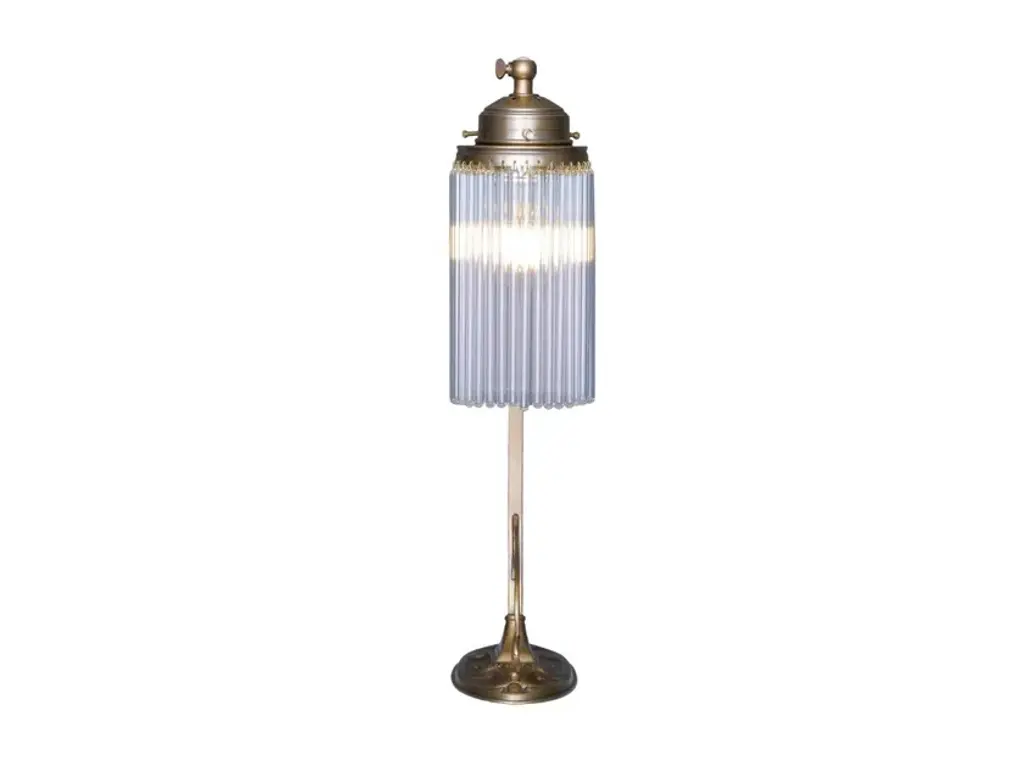 Stuttgart II is a table lamp made of brass available in different finishes.Finishes: Antique, Shiny brass, Matt brass, Shiny nickel, Matt nickelCapacity : 1x75 W E27These lamps feature a geometric yet gracile decor and glass tubes. They seem particularly weightless due to the fragile decor, which makes them a splendid choice for a feminine surrounding.