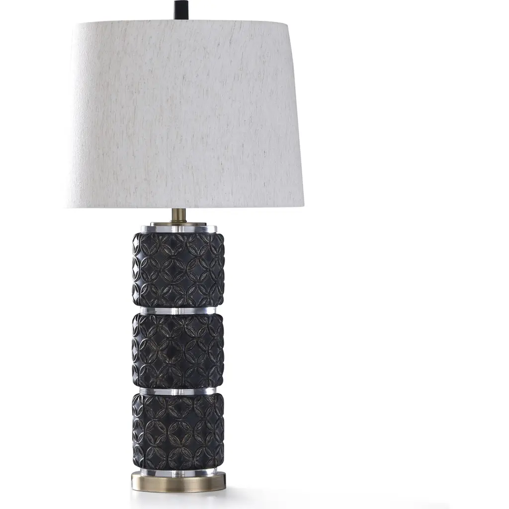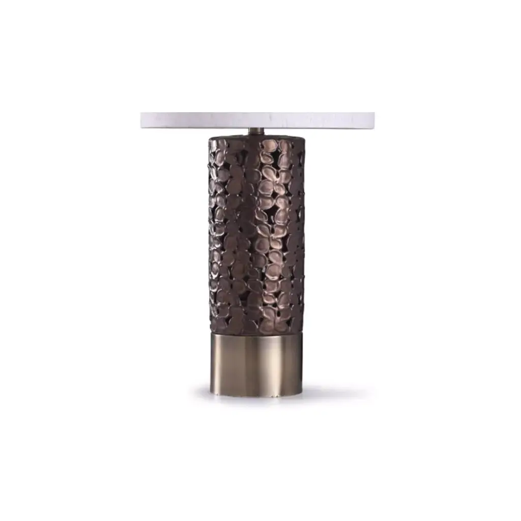 Accent your home décor with this Chesham Floral Design table lamp from the Signature Collection by StyleCraft Home Collection. Mixed materials create an impressive industrial look in this attractive table lamp. The body features ceramic and steel, with a brass base giving way to a long bronze mental section. The off-white shade consists of linen and polyester and adds to the lamp’s symmetry with its cylindrical form. This elegant piece brings fashionable design to bedrooms, living rooms and dining rooms. Regardless if you put it in the bedroom or family room, this table lamp stands out. Suitable for residential use in a dry location. This modern table lamp is UL listed in compliance with the nationally recognized safety standards. Due to lighting and monitor differences, actual colors and finishes may vary slightly from what appears online.