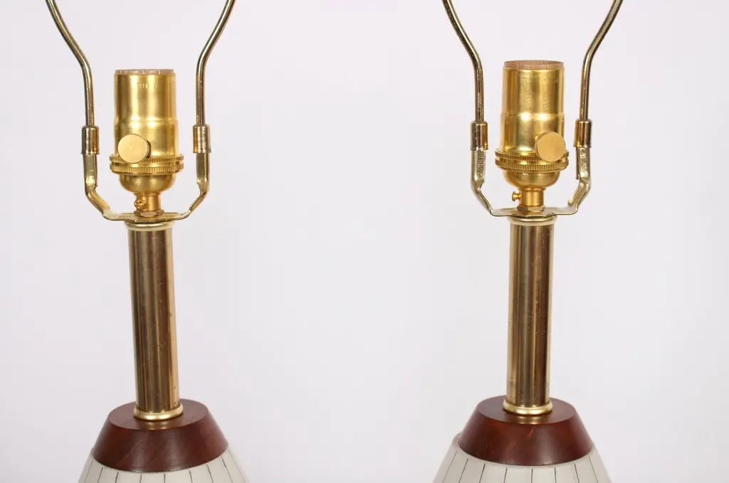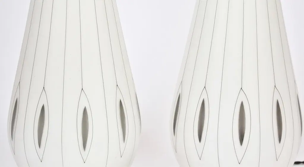 Substantial Pair Of White Glass With Sterling Silver Overlay Table Lamps, 1950's