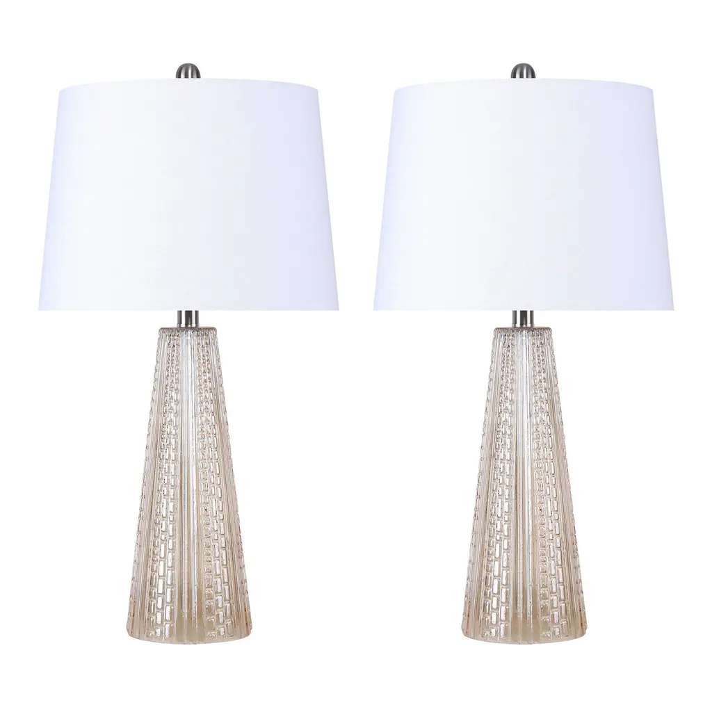 Sugar 26.25" Glass Table Lamp W/ Textured Base (Set Of 2) - Champagne Glass/brushed Nickel