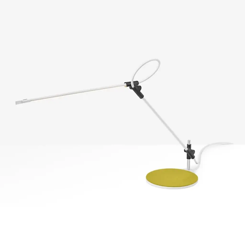 With its minimalist form and high functionality, the Superlight LED Table Lamp by Pablo Designs is a welcome addition to any contemporary setting. Its slender aluminum body features a full 3-axis range of motion for convenient positioning of its warm, glare-free LED light. A rounded Steel base provides adequate support for the fixture, allowing for fluid, sweeping adjustments while maintaining the fixture’s sleek, weightless aesthetic.