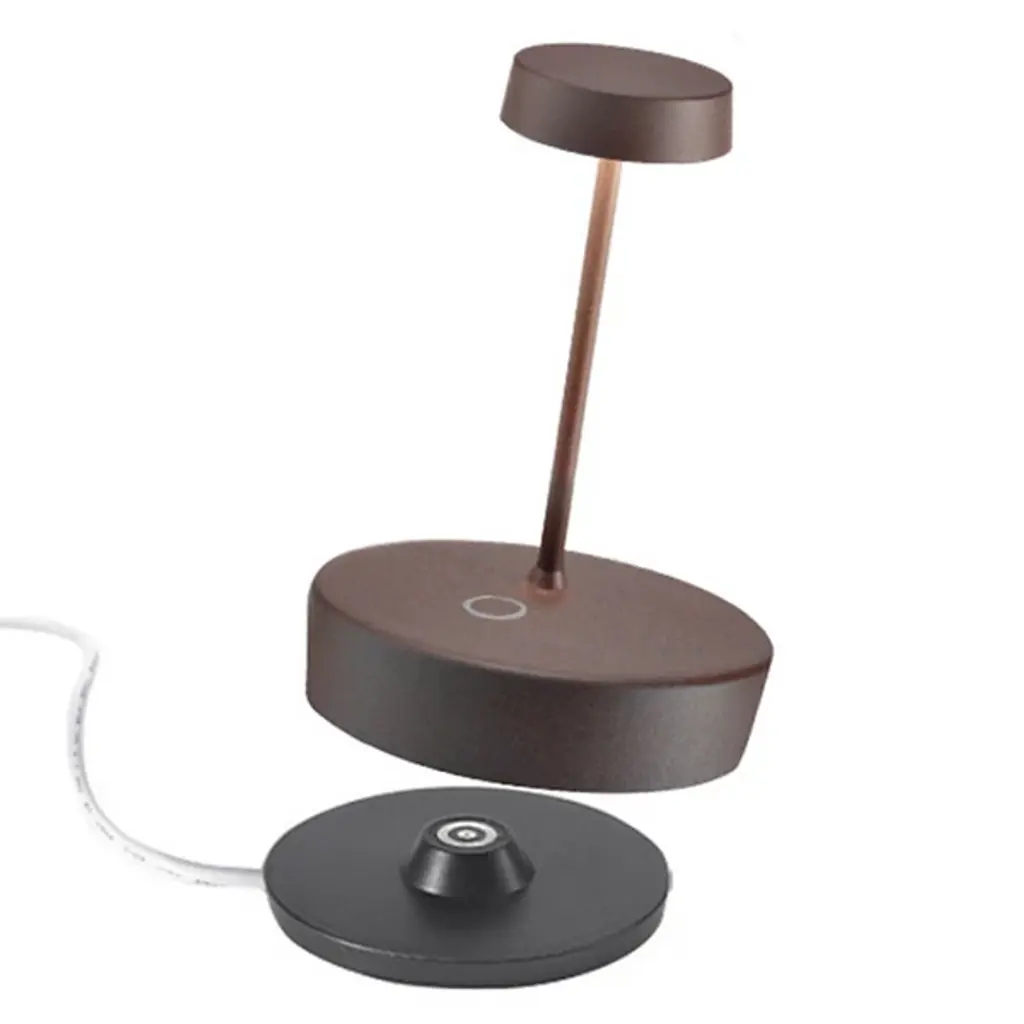 The Swap Pro Rechargeable LED Mini Table Lamp from Zafferano America is a compact, rechargeable, battery-powered cordless table lamp designed for indoor and outdoor use (excluding gold and silver finishes). Featuring a touch control on the base for easy on/off functionality and dimming, this lamp combines convenience with a sleek design. Its electronic control system monitors battery life, ensuring a consistent luminous output until fully depleted. Optimized recharging is done via the included contact charging base, though the battery charger is sold separately.