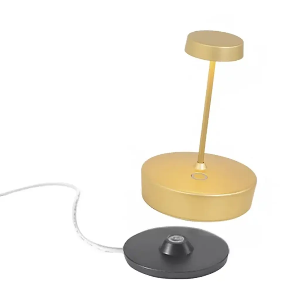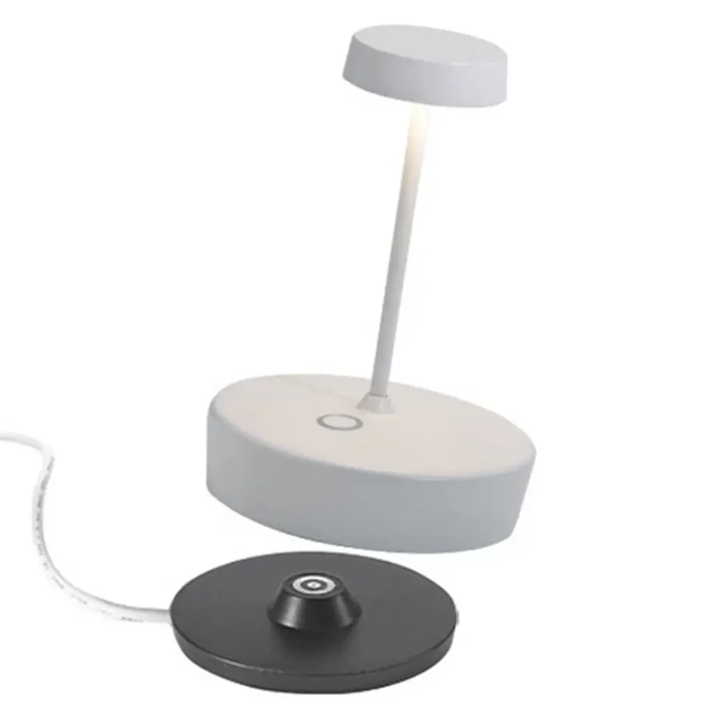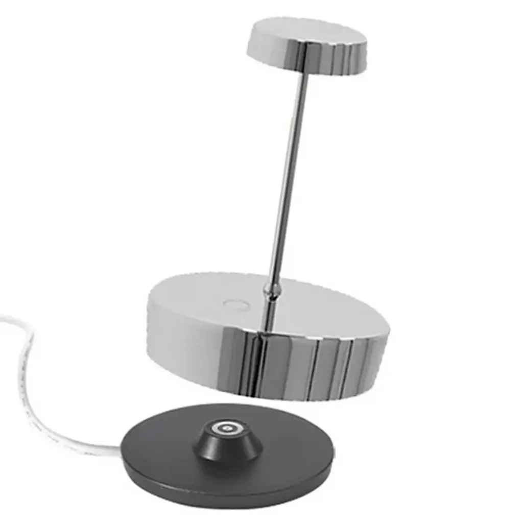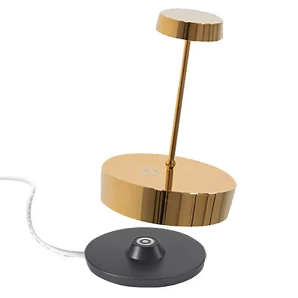 The Swap Pro Rechargeable LED Mini Table Lamp from Zafferano America is a compact, rechargeable, battery-powered cordless table lamp designed for indoor and outdoor use (excluding gold and silver finishes). Featuring a touch control on the base for easy on/off functionality and dimming, this lamp combines convenience with a sleek design. Its electronic control system monitors battery life, ensuring a consistent luminous output until fully depleted. Optimized recharging is done via the included contact charging base, though the battery charger is sold separately.