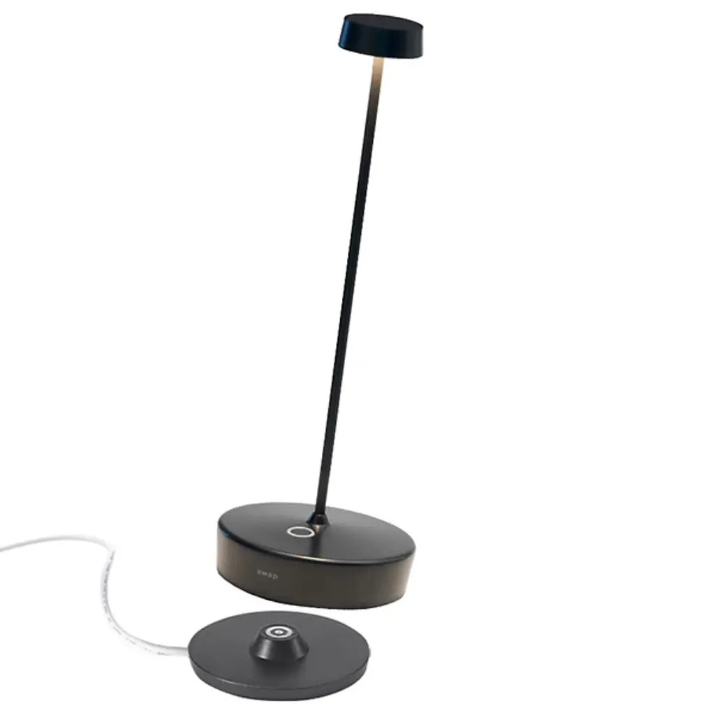 The Swap Pro Rechargeable LED Table Lamp from Zafferano America is a rechargeable, battery-powered cordless table lamp designed for indoor and outdoor use. It offers versatility with the option to use decorative shade accessories or enjoy its sleek design. An advanced electronic control system monitors battery life and ensures a consistent luminous output until the battery is fully depleted. The optimized recharging process ensures the lamp is always properly charged, making Swap a practical and stylish lighting solution for any setting.