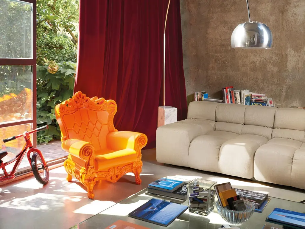 Sweet Fuchsia Little Queen Of Love Kids Armchair by Moro, PigattiDimensions: D 70 x W 76 x H 83 cm. SH: 32 cm.Materials: Polyethylene.Available in different color and finish options. This product is suitable for indoor and outdoor use. Please contact us.Our stories happen in places precious to us. SLIDE was born from the desire to produce furniture and light to create the perfect atmosphere that highlights emotions.Design is inspiration, surprise, joy. It's the amazement of seeing something unique for the first time. It's creating spaces to feel good and live surrounded by beauty. It means giving a personal imprint to indoor and outdoor spaces. It means choosing your ideal element that is the perfect setting for emotions and experiences, which become indelible memories. The founder Giò Colonna Romano knows this well, combining his fervent imagination with thirty years of know-how in the processing of plastic resins, giving birth to SLIDE in 2002. The first note of amazement is the luminous furniture, which immediately became a must have in the world of events. Since 2015, his son Marco Colonna Romano has taken over the reins of the company, with the same desire to grow and innovate as his father. Thanks to a new panache and the team of young people it surrounds itself with, SLIDE becomes a beloved company for outdoor furniture: new shapes, materials and tactile textures have won the hearts and ideas of architects and interior designers around the world. SLIDE has thus created complete collections and furnishings, with new shapes, whose lines arise from collaboration with internationally renowned designers of the caliber of Alessandro Mendini, Paola Navone, Stefano Giovannoni, Fabio Novembre, Marcel Wanders, Karim Rashid, Marc Sadler, Francesco Favaretto and Marcantonio.New materials were chosen and inserted, initially soft and rigid polyurethane, and then comfortable cushions, waterproof fabrics, tactile textures ideal for completing the polyethylene furnishings with taste and class. But SLIDE does not forget its first essence, lighting: in recent years it has developed a line of much more technical lamps for large areas, essential in shape but with great visual impact. For the first time, Slide has managed to give an artisanal twist to an industrial process: to meet the increasingly high demands of living, the production creates non-replicable shades, in which every small imperfection enhances the industrial process and makes each piece unique . Because Slide's strength has always been the careful reading of the market, the creation of something that didn't exist and which then became necessary: here Slide continues its production in Buccinasco, on the outskirts of Milan, but its name and its products reach more than 130 countries around the world.