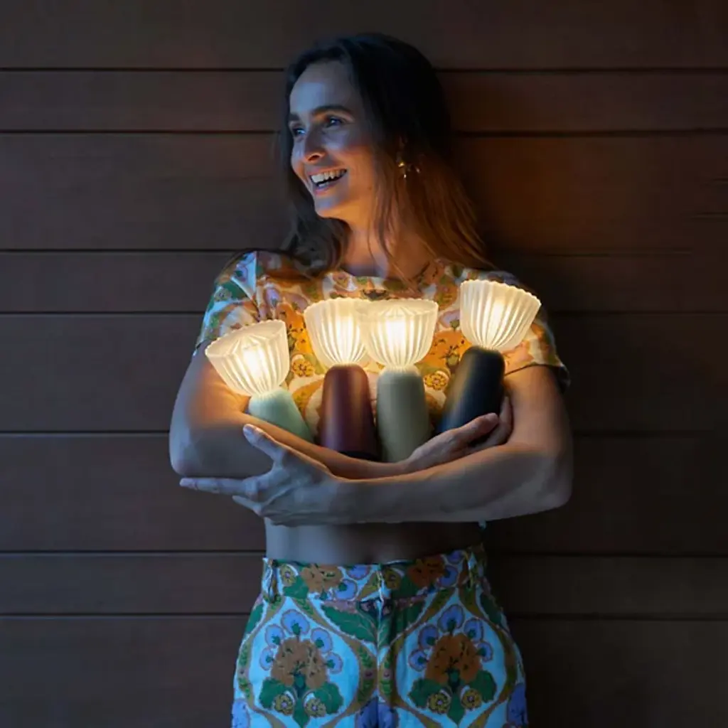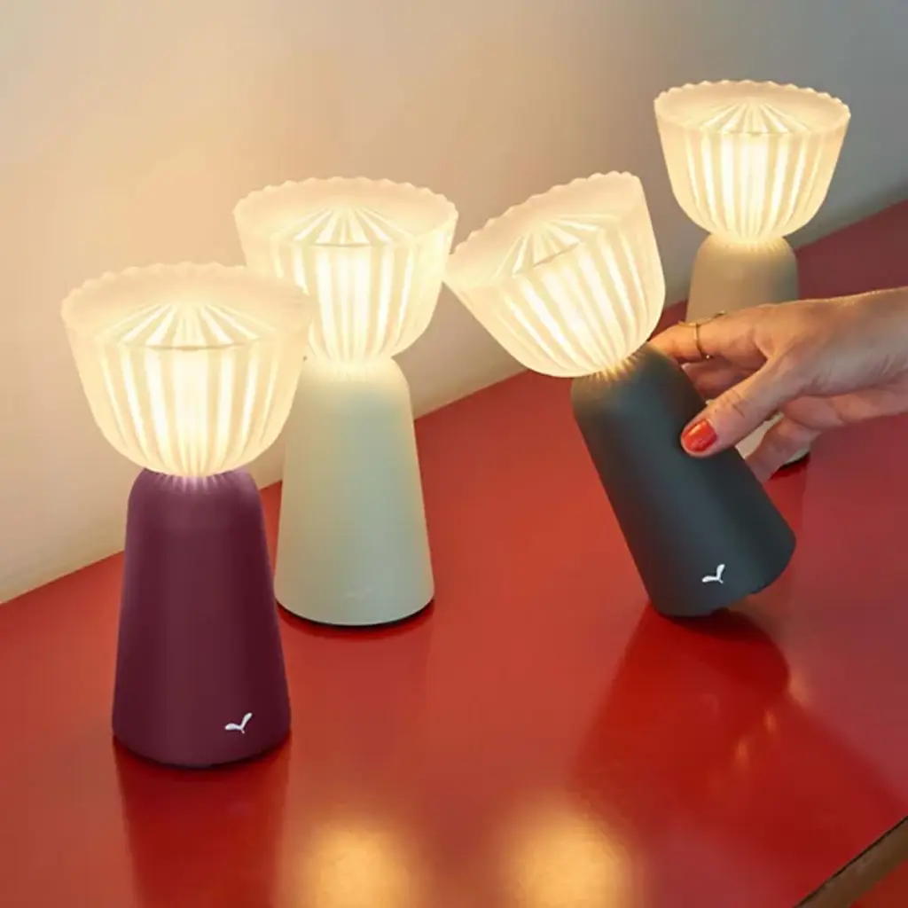 Introducing the Swiing LED Outdoor Lamp by Fermob, a stylish blend of retro design and modern technology by Tristan Lohner. With a simple tilt switch, it offers effortless control, emitting a warm, inviting glow through its polycarbonate diffuser. Compact yet powerful, Swiing provides up to 10 hours of light on a single charge, recharging in 3 hours. Ideal for indoor or outdoor spaces, it’s eco-friendly, durable, and fully recyclable, with adjustable cool and warm light settings.