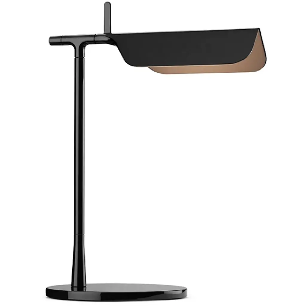 Enhance your task management with the Tab LED Table Lamp from FLOS. Crafted by Edward Barber and Jay Osgerby, this lamp boasts a distinctive bent head that adjusts for precise task illumination. Constructed from die-cast aluminum, the fixture ensures durability and sleek aesthetics. Its head incorporates a PMMA reflector, optimizing light diffusion. With the Tab lamp, enjoy efficient task lighting while adding a touch of contemporary elegance to your workspace or living area.