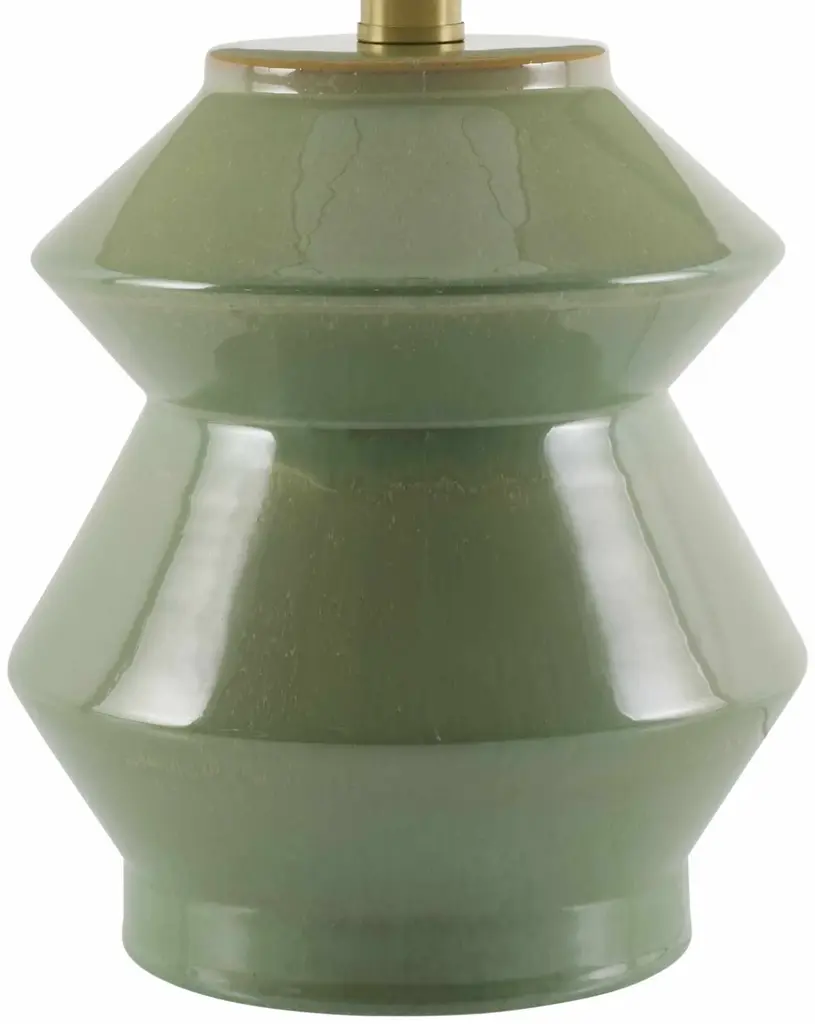 Collection: Tabaquite Colors: Lime Green, Cream, White, Metallic - Brass, Translucent Material: Body: Ceramic / Shade (Outside): Linen / Shade (Inside): Polystyrene / Finial: Iron Styles: Contemporary Made In: China Lighting Type: Accent Table Lighting Shade Material: Linen, Polystyrene Shade Color: White, Cream Cord Length: 6' Switch Type: On/Off Number of Bulbs: 1 Socket Type: E-26 Bulb Wattage: 60W