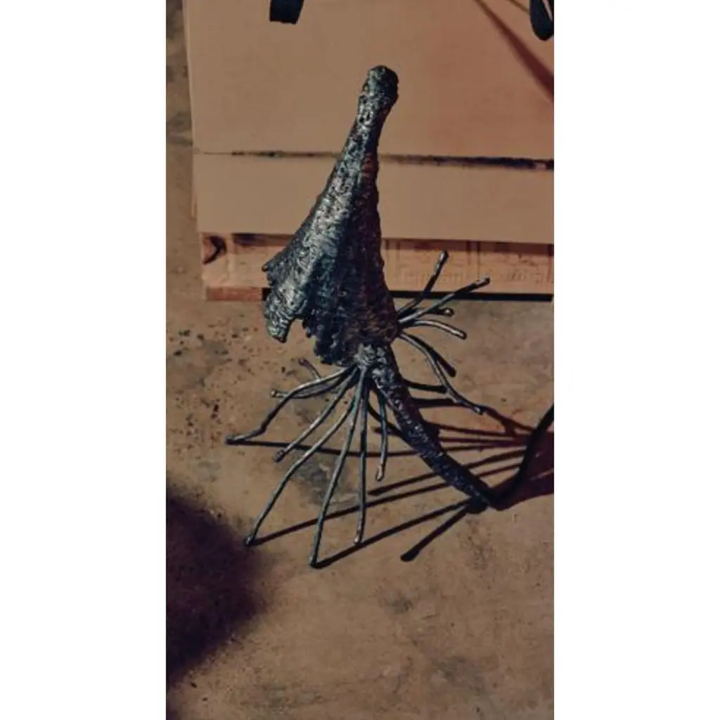 Table lamp 5 by Michael GittingsDimensions: D 30 x W 30 x H 70 cm.Materials: Stainless steel.All our lamps can be wired according to each country. If sold to the USA it will be wired for the USA for instance.Michael Gittings imagines with his hands. Since establishing his studio in 2016, the Melbourne based designer and sculptor has built an impressive practice,producing a vast array of curious and covetable objects. With work featured in Sydney Design Week 2022 and an upcoming solo exhibition at Oigåll Projects in Melbourne, Gittings is excitedly (and busily) preparing to share his talent and craft with new audiences. I recently sat down with Gittings to discuss his recent work and broader creative process. There was the sense of someone quietly buzzing with productivity and ideas, thrilled to be making and exploring new techniques. Whether it be envisioning a new collection of kink inspired polished metal objects, or tweaking a pair of heat-proof gloves to interact more intimately and gesturally with blown glass (a new material obsession). Playful, speculative and down-to-earth, Gittings conveyed the impression of a designer hitting their stride, propelled by curiosity and a wealth of gathered experience. After the last two years of restrictions, Gittings says “it kind of feels like the start”. Originally crafting more classic furniture shapes in his signature metalwork, Gittings’ creations have become increasingly marked by organic abstraction, subversion and evolution. This intertwines with Gittings’ process of making – one that is extremely intuitive and guided by experimentation. Aside from the deep technical traditions he engages with, there is an openness to the possibilities and whims of the materials themselves; as if they are living, feeling substances. According to Gittings, it wasn’t always destined to be furniture or sculpture. “I originally wanted to make guitars” he admits with a smile. “But then I quickly worked out I can’t do that, because there’s certain... limitations. Like a guitar or violin actually has to sound good [laughs]. Like you can’t just make a shit sounding guitar” he quips. “What I like about furniture, is that there’s a starting place to begin from. There’s still some constraints... but there just feels like all of these possibilities. You can make so many different shapes, textures, weird forms. I don’t necessarily think about it conceptually, I just find it more interesting to play with these things and ideas and see where the work wants to go.”For his solo exhibition at Oigåll Projects, Gittings took a twisting journey down a nocturnal, overgrown path. He relished the opportunity to create somethingunrestricted and unfettered. “When I came to [Andy Kelly and Mitchell Zurek] with the idea for what I wanted to make, they were like just go wild. Which was a relief. I get excited when I start putting a plan together. I wanted that energy and excitement shared, otherwise it’s quashed and crushed... It’s grown massively since it’s conception.” The show, titled ‘when the night ripped a hole through Eden’, is an exploration of organic plant-like shapes and rippling, almost reptilian textures, prompting dystopian narratives and conveying an elegant savageness. They appear almost like Jurassic artifacts, recovered from tar. “It’s heaps darker now than I originally imagined. When I first started thinking about the show, I liked the idea of it existing within a kind of fantasy realm. It was very colourful, there was lots of mirrored surfaces. But that idea just morphed when I discovered how to texture the metal in this specific way, instead of polishing. I also started thinking about panpsychism, the consciousness of plants and animals, a more psychological direction than the last collection I made. I started having weird dreams, which usually happens in the lead up to a show. I’m working constantly and so a symbiosis occurs. There’s a dark violence to them now.”Gittings’ work for ‘Future Ruins’, which exhibited last year at Gallery Sally Dan-Cuthbert in Sydney, also renders scenes of nature taking over, reclaiming andinfiltrating domestic objects and architectural spaces. For the designer, this aesthetic is ultimately a result of the overall design process and discovering how to make new shapes and forms. “My thought processes are aligning with my abilities, so the organic elements are kind of appearing as I work”.