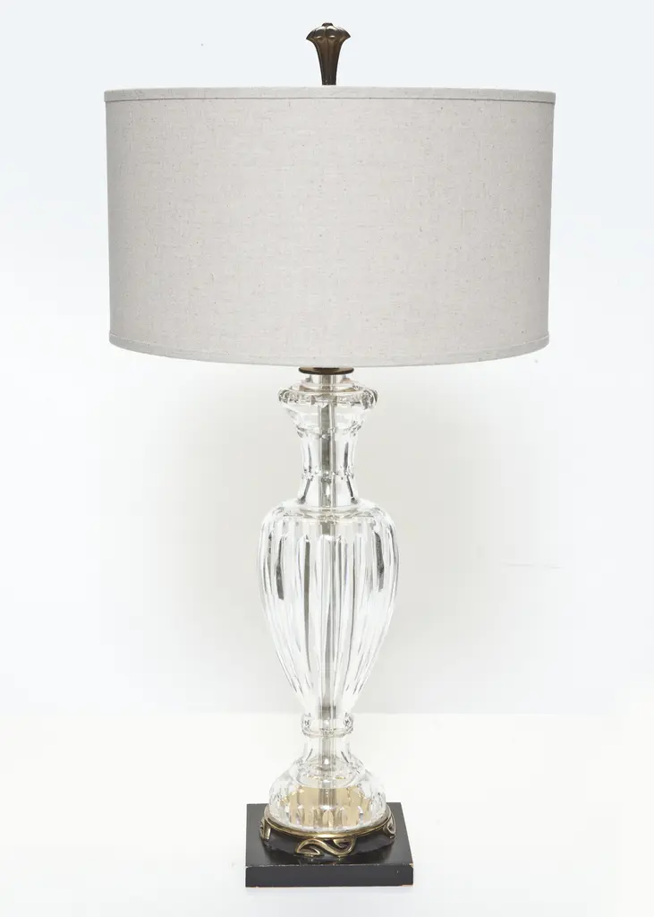 Kinzig Design Studios makes this stunning Alessandra Table Lamp. This glass table lamp features a slender, elegant design with an asymmetrical shade covered with sheer burned-out silk with a green leaf pattern. Perfect table lamp for the living room, bedroom, den and office. This fully handcrafted lamp is equipped with a single bulb socket and is finished with a beaded pull and a beaded finial. Handcrafted in the USA! This fixture usually ships in 2-4 weeks. This item ships for free to the lower 48 states. • • Please note that the price listed pertains to a fixture that will appear very similar to the light shown in the featured photograph and as outlined in the accompanying description. Made with UL Listed parts. For use with a single standard incandescent lightbulb of up to 60-watt max (included). Can be used with an LED lightbulb of up to 100-watt max.