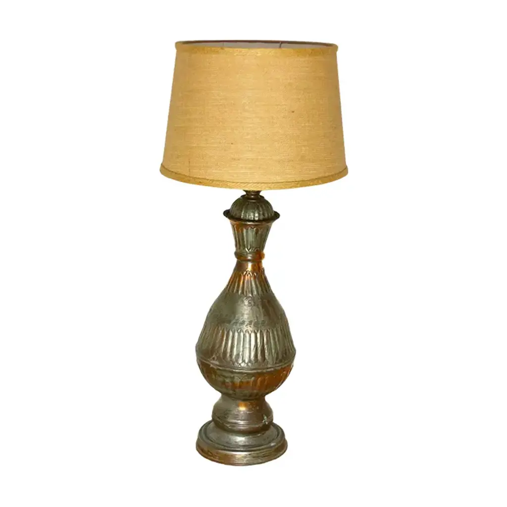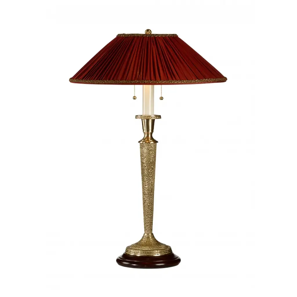 Kinzig Design Studios makes this stunning Alessandra Table Lamp. This glass table lamp features a slender, elegant design with an asymmetrical shade covered with sheer burned-out silk with a green leaf pattern. Perfect table lamp for the living room, bedroom, den and office. This fully handcrafted lamp is equipped with a single bulb socket and is finished with a beaded pull and a beaded finial. Handcrafted in the USA! This fixture usually ships in 2-4 weeks. This item ships for free to the lower 48 states. • • Please note that the price listed pertains to a fixture that will appear very similar to the light shown in the featured photograph and as outlined in the accompanying description. Made with UL Listed parts. For use with a single standard incandescent lightbulb of up to 60-watt max (included). Can be used with an LED lightbulb of up to 100-watt max.