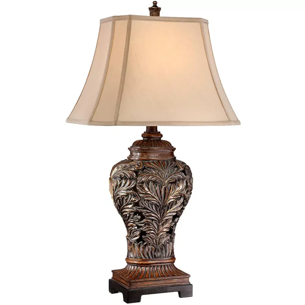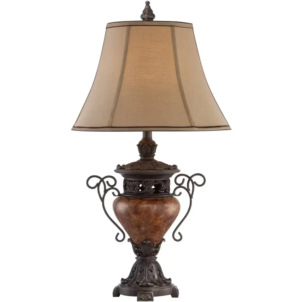 Lainey Table Lamp - Brown Finish - Cream/Light Beige Bell Shaped ShadeThis ornate lamp showcases a highly embellished frame with a brown finish and a matching finial. A bell-shaped taupe fabric shade completes the gorgeous base. An elegant accent for a living room, office, or hallway, this lamp also works well on a dining room buffet or a bedroom nightstand.Features: This table lamp features a full traditional urn shaped body that has a brown wood finish.Collection: LaineyFinish: BrownShade Finish: Taupe Material: PolyShade Material: FabricShade Color/Finish: Cream/Light BeigeShade Shape: BellVoltage: 120VWattage: 100Switch Location: On SocketLamp Base Dimensions: Body: 14.5"H x 5.5"Dia; Base: 5.5"W x 5.5"DShade Length: Top: 8", Bottom: 15"Shade Width: Top: 8", Bottom: 15"Cord Length: 62"Composite Wood Certification Carb 93120: NoComposite Wood Certification TSCA: NoRequired Assembly: Partial AssemblySafety Rating: Dry Location - This item is rated for dry locations, meaning it can be used in an indoor area that is not normally subject to dampness. May include a location subject to temporary dampness provided ventilation is adequate to prevent any accumulation of moisture such as the bathroomBulb(s) Included: NoBulb Type: Replaceable LEDNumber of Bulbs: 1Due to lighting and monitor differences, actual colors and finishes may vary slightly from what appears online.