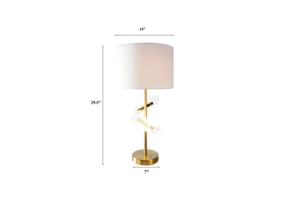 Elevate your decor with this exquisitely crafted table lamp, featuring a bold and innovative design that seamlessly integrates form and function. With its brushed brass finish and elegant acrylic accents, this piece not only provides illuminating light but also acts as a modern art sculpture, perfect for those who appreciate a luxe, contemporary aesthetic. Weight 13.700 lbs. (6.17kgs.)