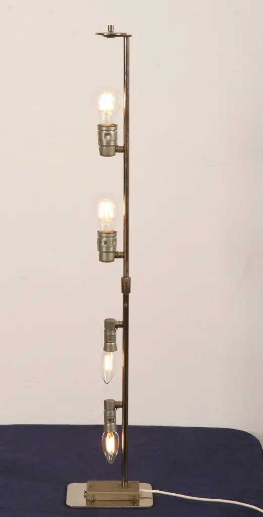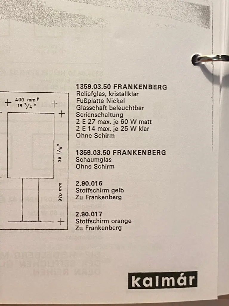 Brass frame nickel-plated fitted with two E27 + E14 socket (stand) up to 60 watts or LED.Another shade color on request possible. There are 2 pieces available, price per lamp. Excellent original condition. Lamp shades restored.