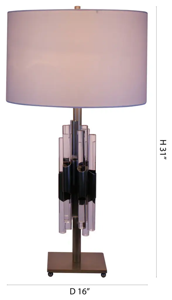 This modern table lamp is in an antique brass. The frame is made out of metal with crystal accents in clear color. It also comes with a drum shade in white color. This table lamp is great for chair side reading or general room illumination. Lighting Information:UL CertifiedUL certification type: BothNot ETL certifiedBulb(s) not includedNumber of bulbs: 1Bulb type: E26Max wattage: 100
