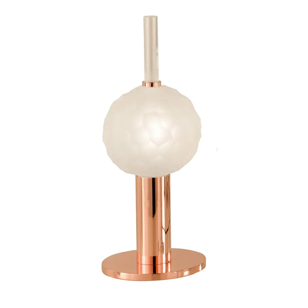 Table lamp China 07 by Magic Circus EditionsDimensions: H 50 x W 32 x D 32 cmMaterials: Brass, mouth blown glass sculpted with a diamond sawColour: soft roseAvailable finishes: Brass, nickelAvailable colours: enamel soft white, soft rose, jade green, mustard yellow, rich grey, opal greyAll our lamps can be wired according to each country. If sold to the USA it will be wired for the USA for instance.Rethinking, reimagining, redesigning familiar objects that we look at every day without ever really seeing them and using light to tell stories, this how Marie-Lise Féry sees her work. Offering a new take on our urban heritage, changing our perspective through her work on scale and usage. Since 2015, Magic Circus Éditions has been setting the world of lighting ablaze, creating airy, playful and magical designs that merge retro with sleek and contemporary. A free-spirited antiquarian, founder Marie-Lise Féry draws inspiration from the world of cabarets and the magic of the circus to give shape to imaginative, fun and playful collections. The air of magic she breathes into her work reveals a wealth of interpretations and widens possibilities for creative interiors. The combination of traditional know-how — outstanding craftsmanship — and her imaginative take on historical, everyday objects lends an unexpected and charming quality to her creations.Féry’s lights are designed just like magic lanterns — precursor to modern-day cinema —, inspiring wonder through oversized, seemingly weightless compositions and understated references. Each collection has its own inspiration: the first models of street lighting for Collection 01; the happy memories of funfairs, sweets and balloons for her latest collection Balloon; the Far East for Collection 02; and the colourful, carefree spirit of the 1970s for Pop-Up, released in 2019. Magic Circus Éditions draws on airy designs, dream-like inspirations, colours and fun to create a sense of enchantment.Magic Circus Éditions founder Marie-Lise Féry was born in Paris. After studyingart business, she moved to New York to start her career. Fascinated by the city’s architecture, she found an endless source of inspiration in the Big Apple’s monumental decors. Returning to France to settle down in Lyon, she opened an antiques gallery named Un Château en Espagne, and started telling her own stories through objects she gleaned on markets all around the country. A way for her to perpetuate her mother’s motto: “Objects with a soul will always belong”. Since 2015, the year she established Magic Circus Éditions, she has moved on to lighting as a new medium for telling her stories, bringing the magic of the show into home interiors. With her love for the circus, turn-of-the-century cabarets and music halls, Marie-Lise Féry’s love of unusual objects has remained strong, but now prefers to focus her attention on pieces she has imagined herself. With a fun and light-spirited approach, she creates a bold visual effect that elicits instant attraction. She collaborates with some of Europe’s greatest artisans, from Prague and Murano to Clermont-Ferrand, working for instance with a Czech company specialising in sculpting glass using a diamond-blade saw, or an auto body shop renowned for their work with lacquers. The refinement of shapes and finishes, bespoke designs and technical excellence all contribute to creating pieces that inspire surprise and wonderment. In the manner of Wes Anderson in Grand Budapest Hotel, blending together elegance, humour and unexpected details, her designs never fail to surprise. Attentive to the effect of her designs both in daylight and at night, Marie-Lise Féry takes us on a journey through space (from outside to inside) and time (from yesterday to today).