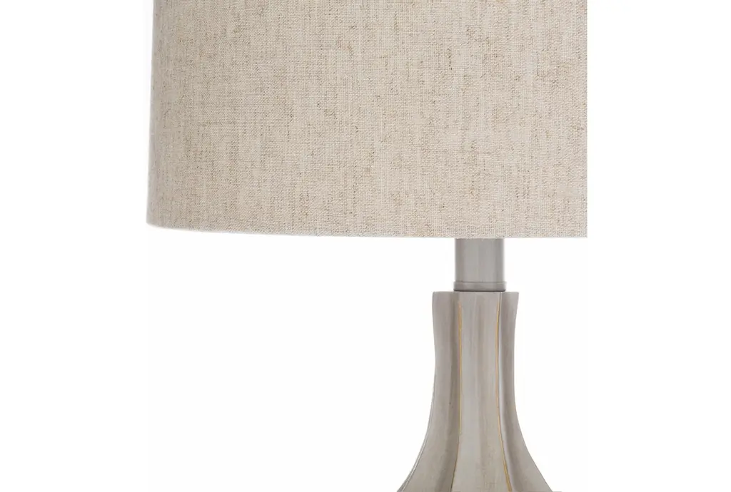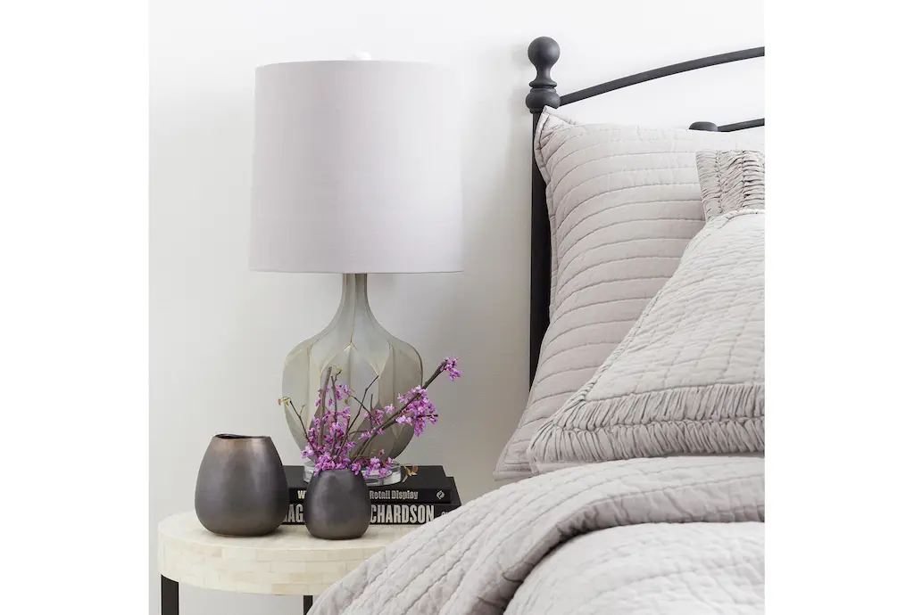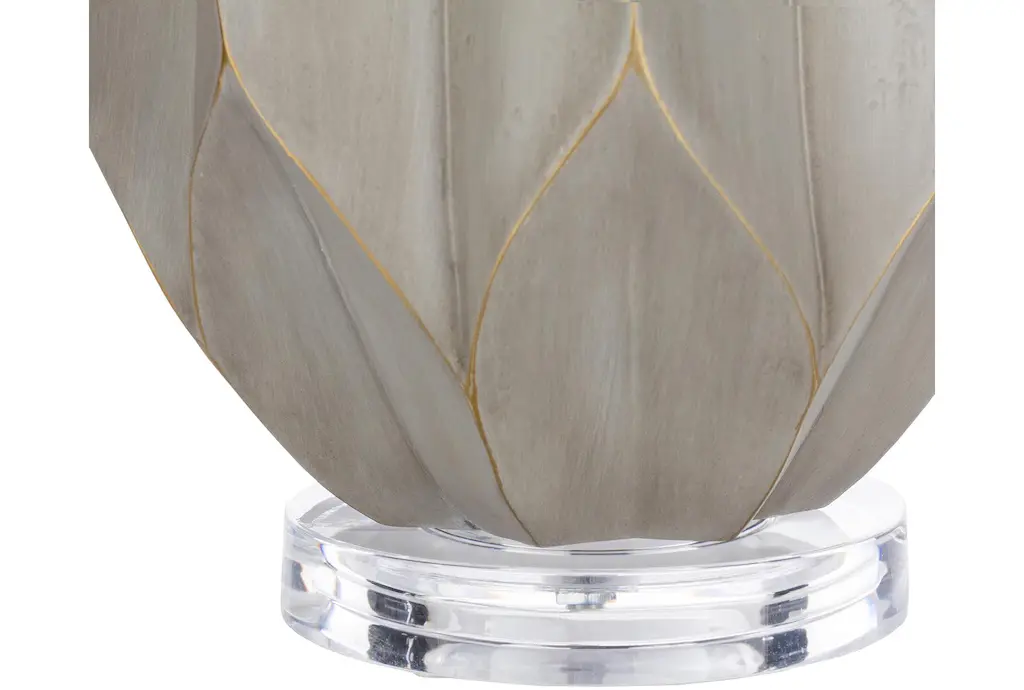 Add a touch of sophistication to your bedroom or living room with the Table Lamp-Hand Finished With Crystal Base. Designed with a modern aesthetic, this lamp features a stunning light grey crystal base that complements its oval shape and pedestal design. The linen composition of the grey shade provides a soft, inviting glow, making it a perfect addition to any space.