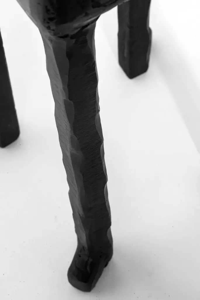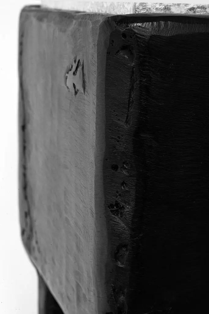 LUMINAIRES No. 2J.M. Szymanskid. 2022The combination of blackened steel and cast glass are combined to create this striking table lamp. Unusual geometries coupled with beautiful materials help to make this lamp truly special and one of a kind. Custom sizes available. Made in the Bronx, New York, USA.Our products are fabricated and finished by hand, so variations in size, shape, and patina color are a natural result of this process. Tooling marks and surface scratches are part of the character of many finished pieces. All products are sealed with oil and wax, which, over time, are not impervious to moisture. Our blackened steel pieces installed outside or in areas exposed to moisture indoors, especially in marine environments, will rust. Condensation from hot and cold drinks will leave rings on blackened steel table tops. Coasters or placemats can protect the finish. Periodic maintenance of blackened steel items may be required.