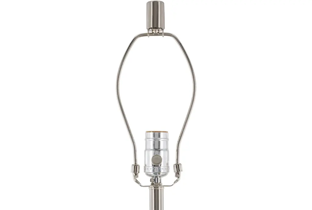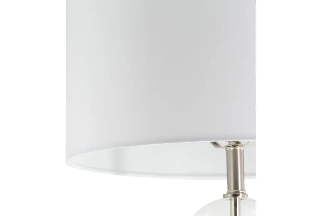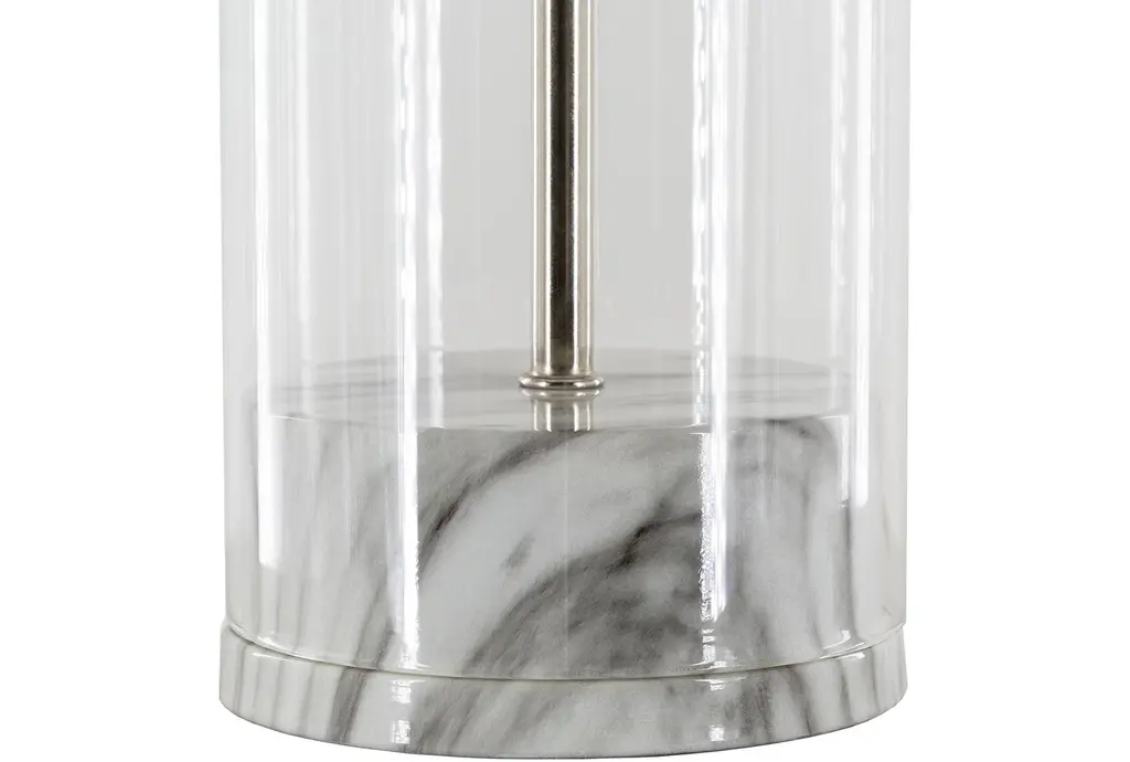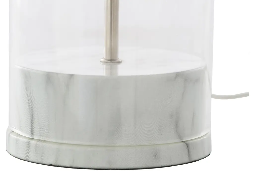 This modern table lamp boasts a tall, sleek design and is constructed with durable fiber material. The white clear painted translucent glass adds a touch of elegance to any room.