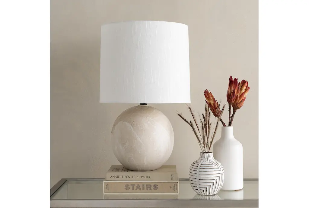 Table Lamp-White Marbled Ceramic | Round By Surya