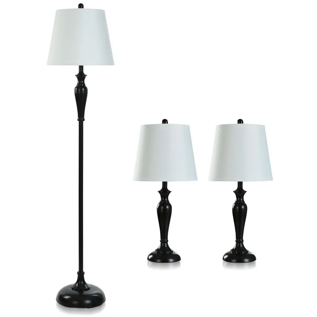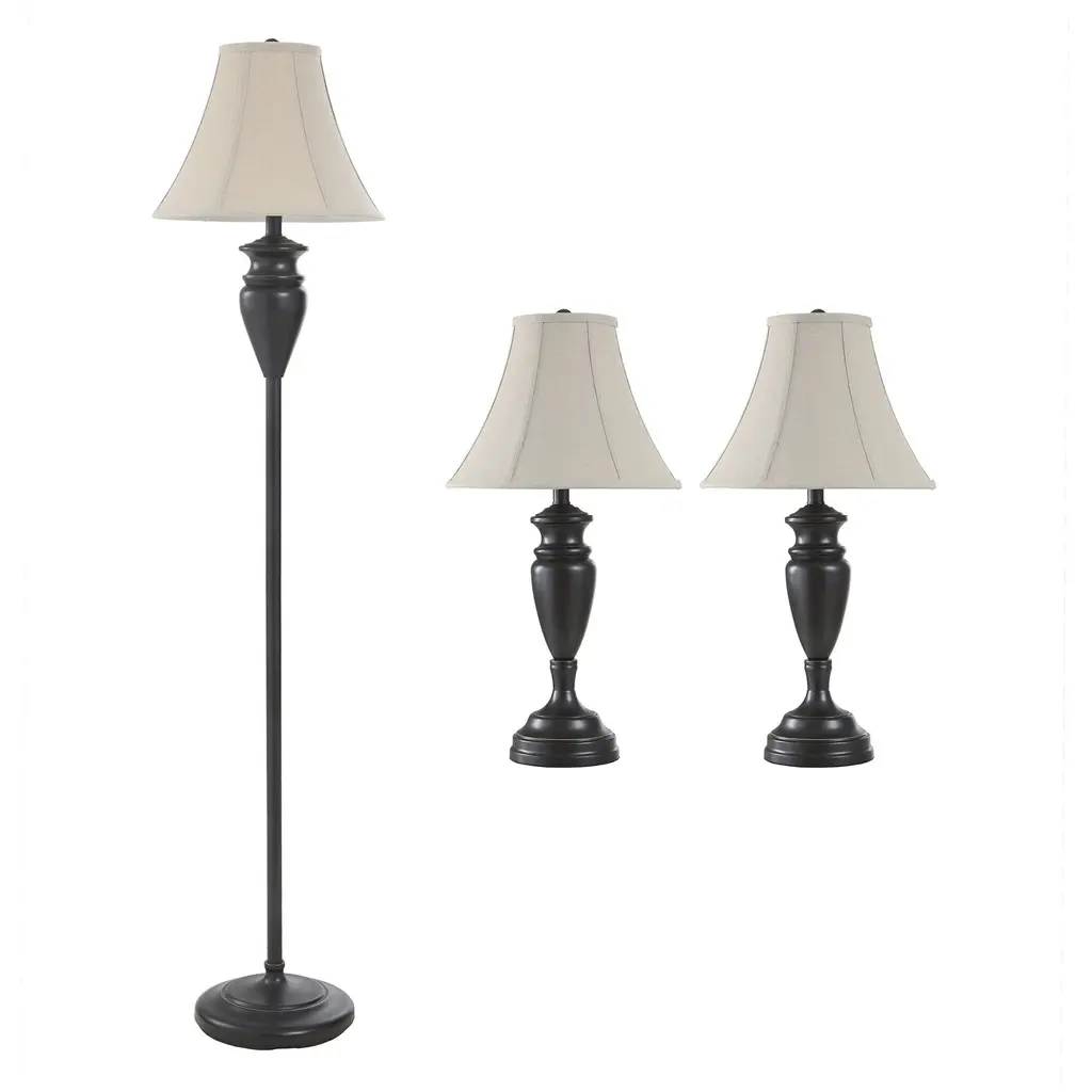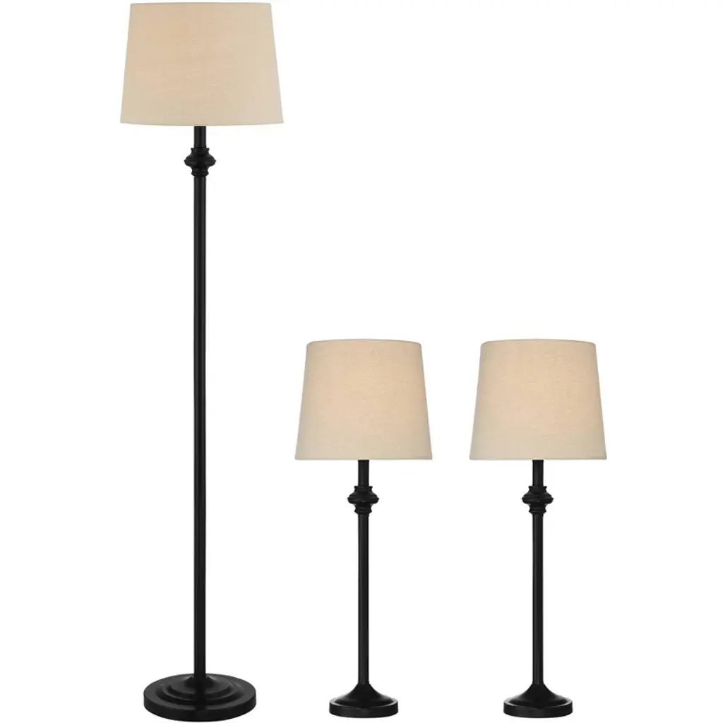 Bring elegant style to any room in your home with the Spiral Cage Table and Standing Lamp Set of 3 by Yorkshire Home. With an ivory shade and an open spiral cage design in an oil-rubbed bronze metal finish, these stylish living room lamps can also be used to provide warm ambient lighting for your entryway, bedroom, or home office. The chic standing light and two matching table or bedside lamps are the perfect way to achieve a cohesive look in any room. These table and floor lamps for the living room are sure to add a contemporary touch and fresh flair to your room décor.