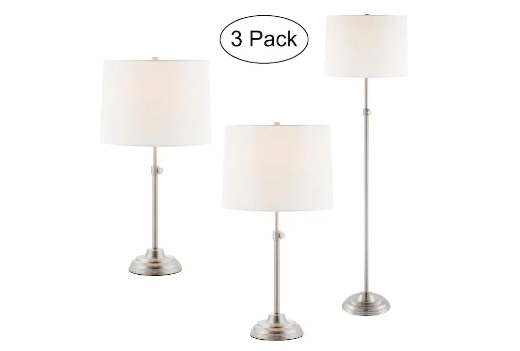 Table Lamps And Floor Lamp Traditional Set Of 3: Brushed Steel, Linen Shades - Yorkshire Home